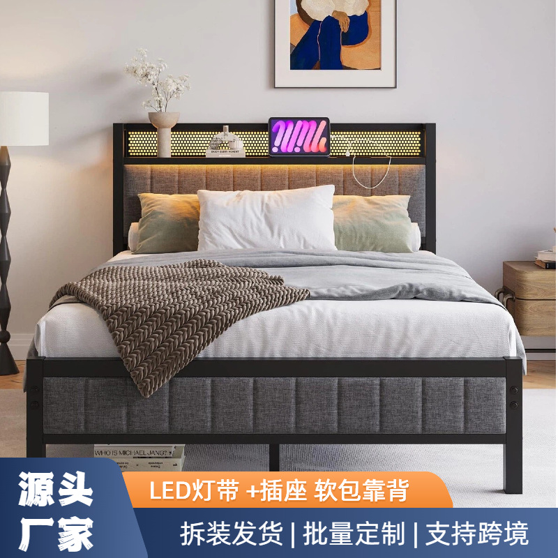 철제 침대, 심플한 디자인, 조명 포함, 소프트 패딩 침대머리판, 침실용 싱글/더블 침대, 호텔/아파트/임대용, 철제 프레임 침대, 싱글 침대스토어 가기