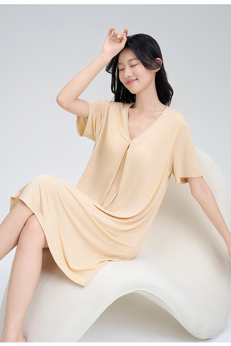 여성용 모달 잠옷 봄 여름 얇은 모달 가슴 패드 항균 임산부 잠옷 플러스 사이즈 홈웨어 잠옷스토어 가기