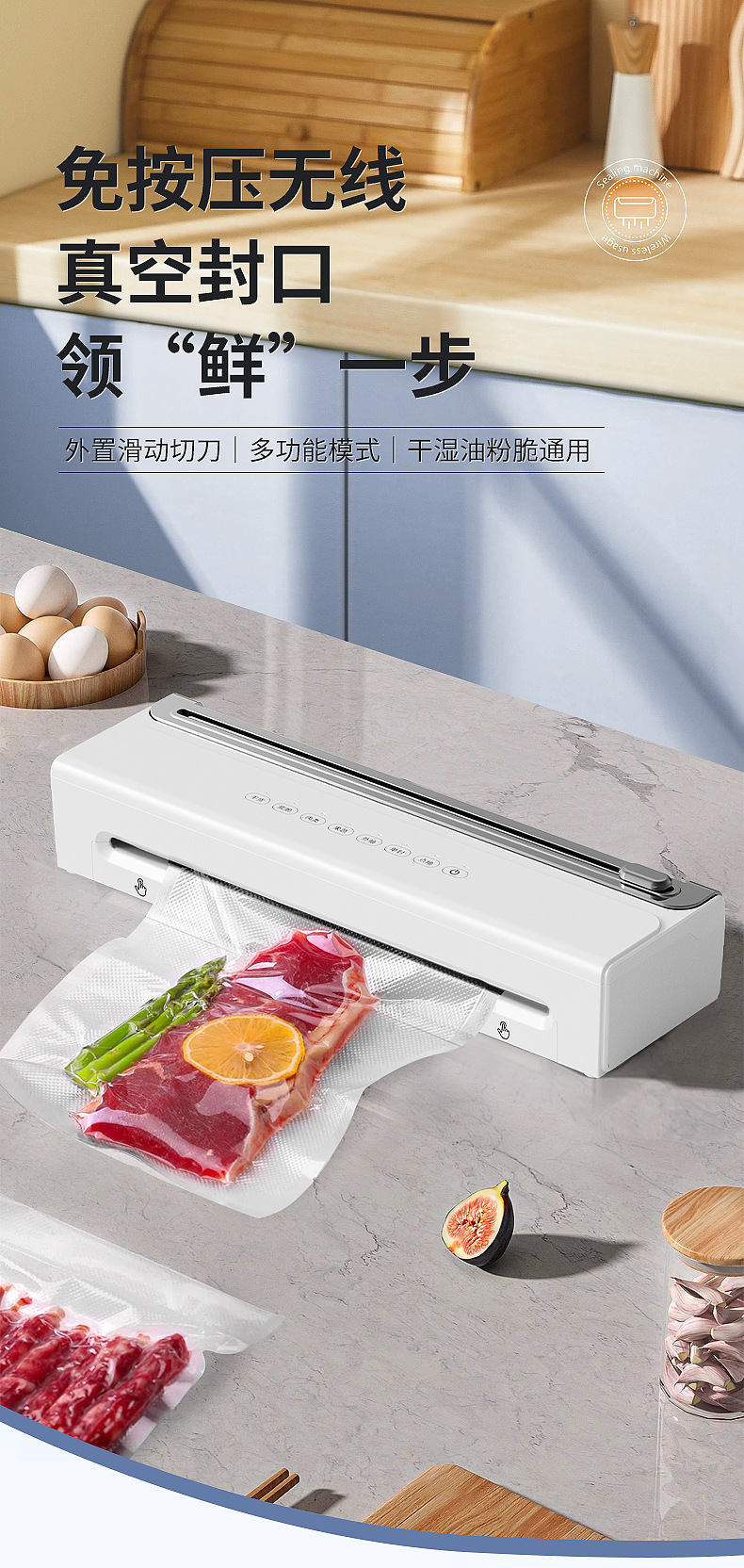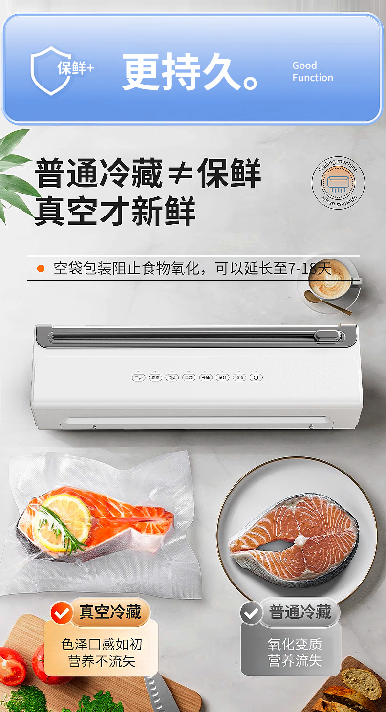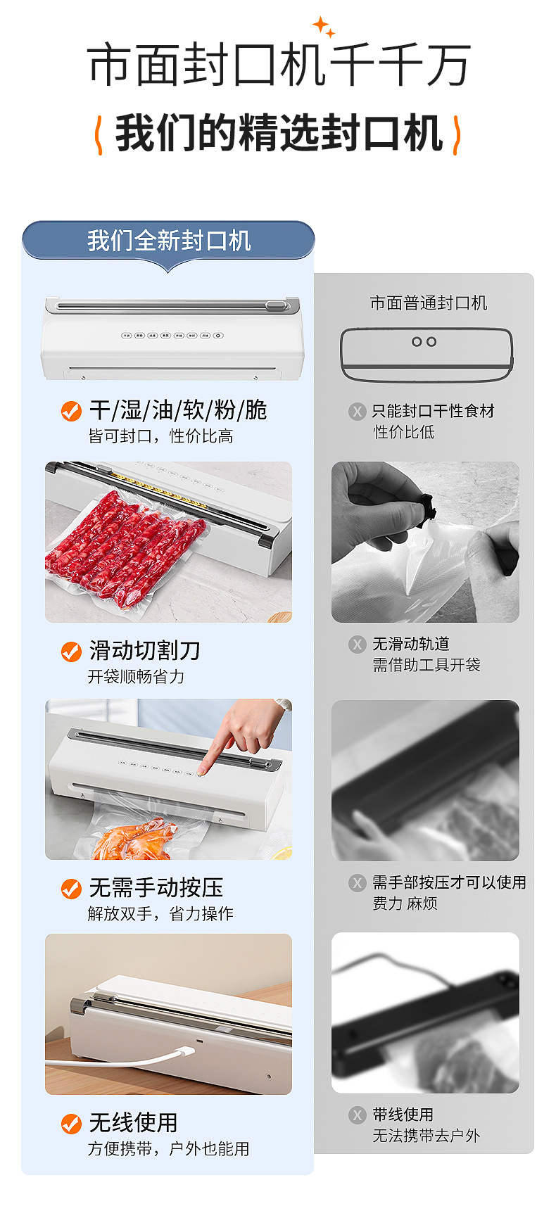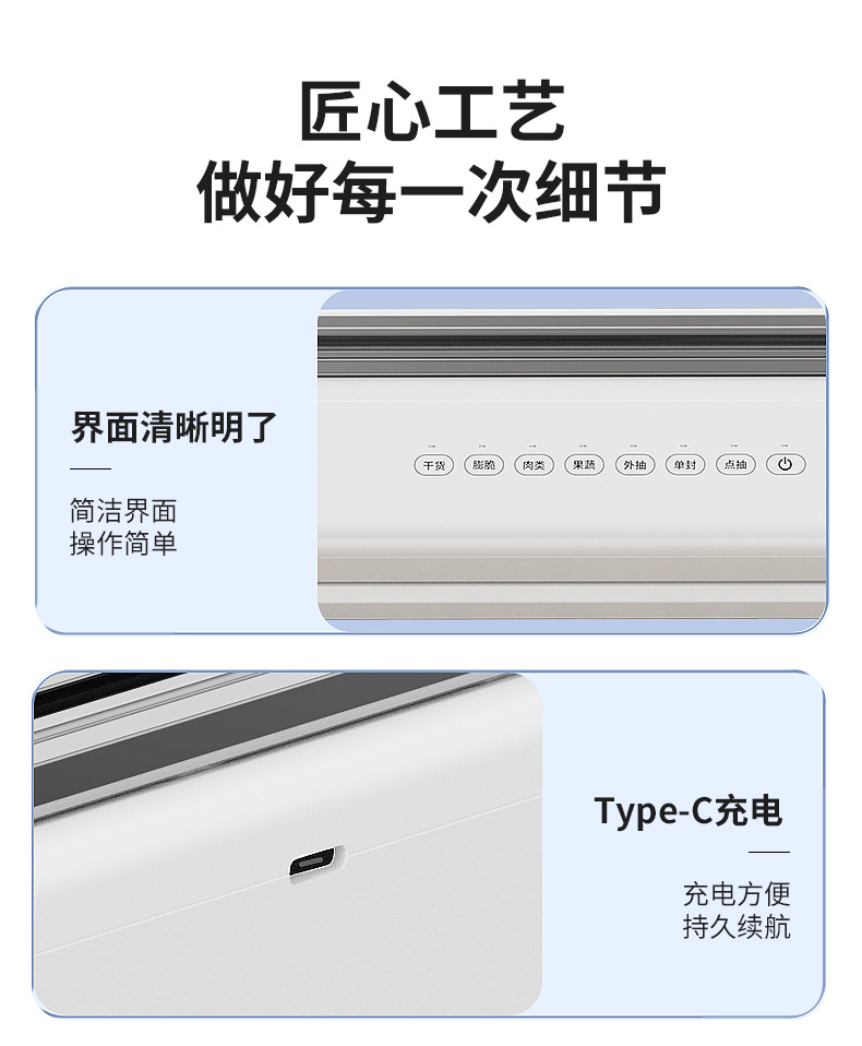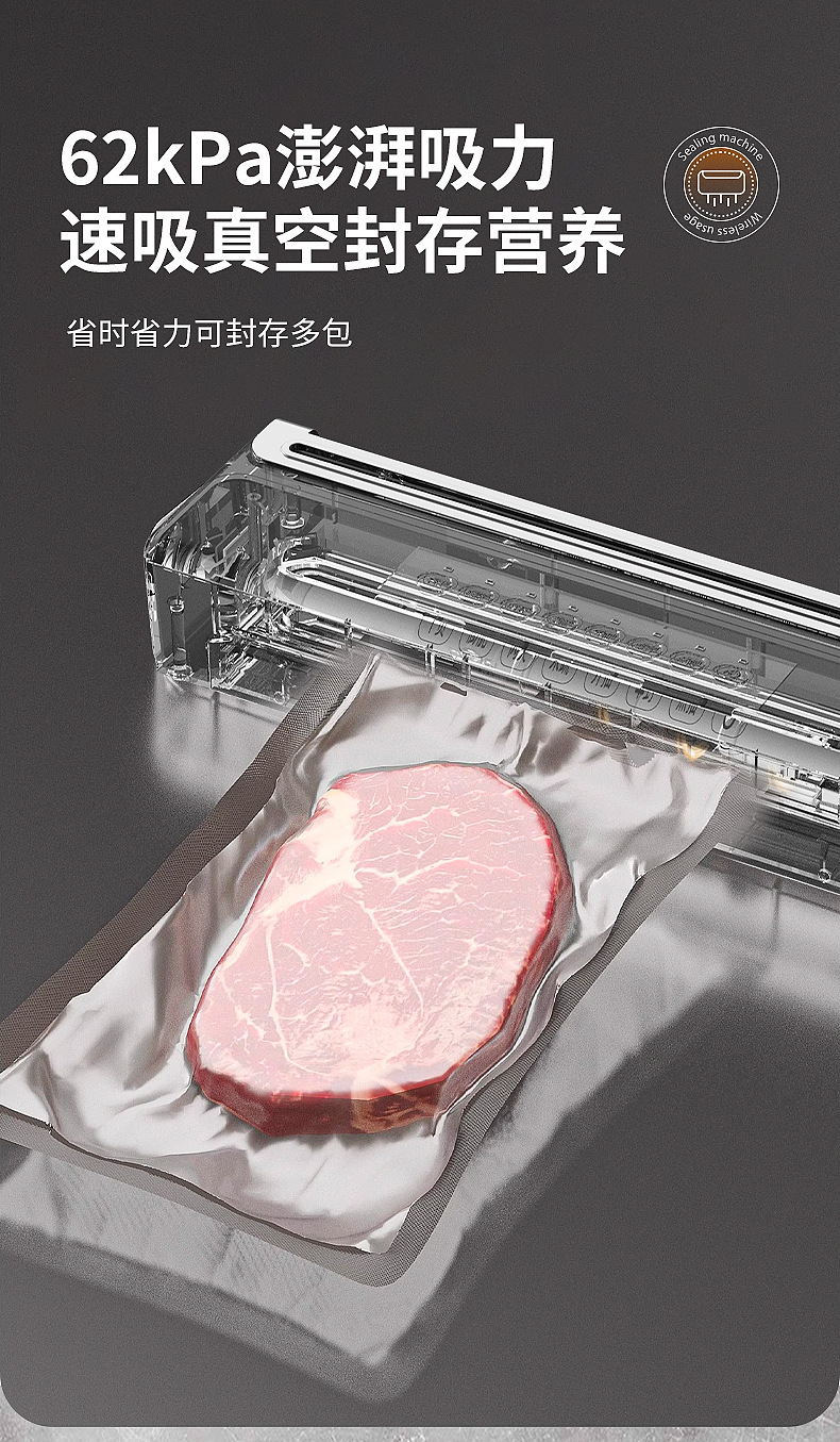 功能介绍:免按压真空封口 单封口 外抽等
