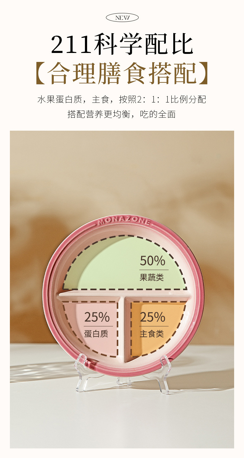 MTOYMONAZONE 분할 접시 211 지방 감량 및 체중 감량 특수 식사 접시 세라믹 식기 성인 아침 식사 접시