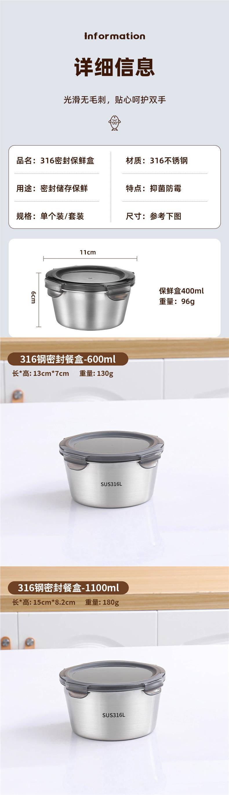 • 밀봉그릇-600+1100ml [316L 스틸]★
