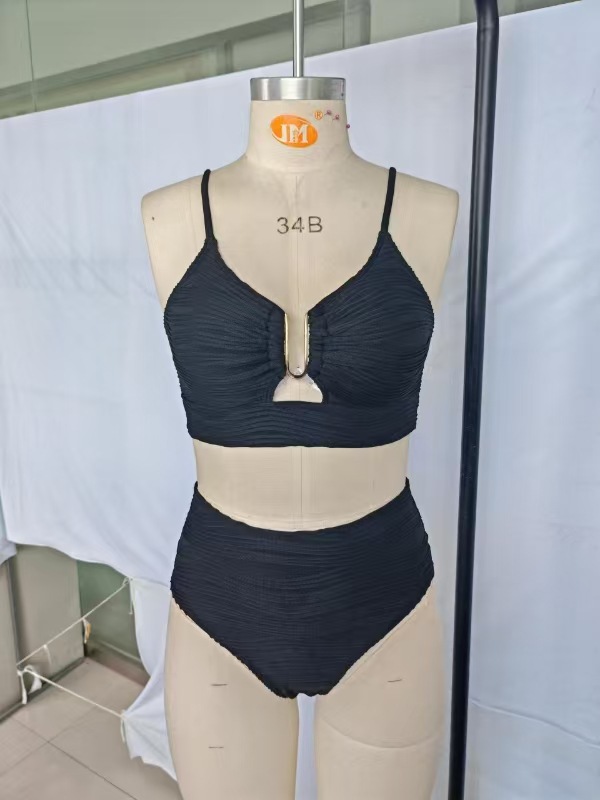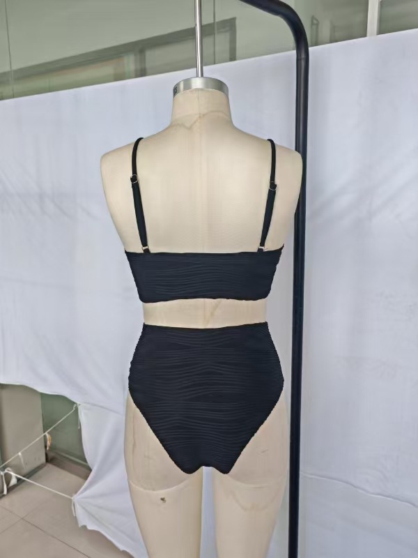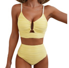 2025 Amazon 새로운 국경 간 유럽과 미국 대외 무역 수영복 솔리드 컬러 섹시한 하이 웨이스트 비키니 스플릿 수영복 여성
