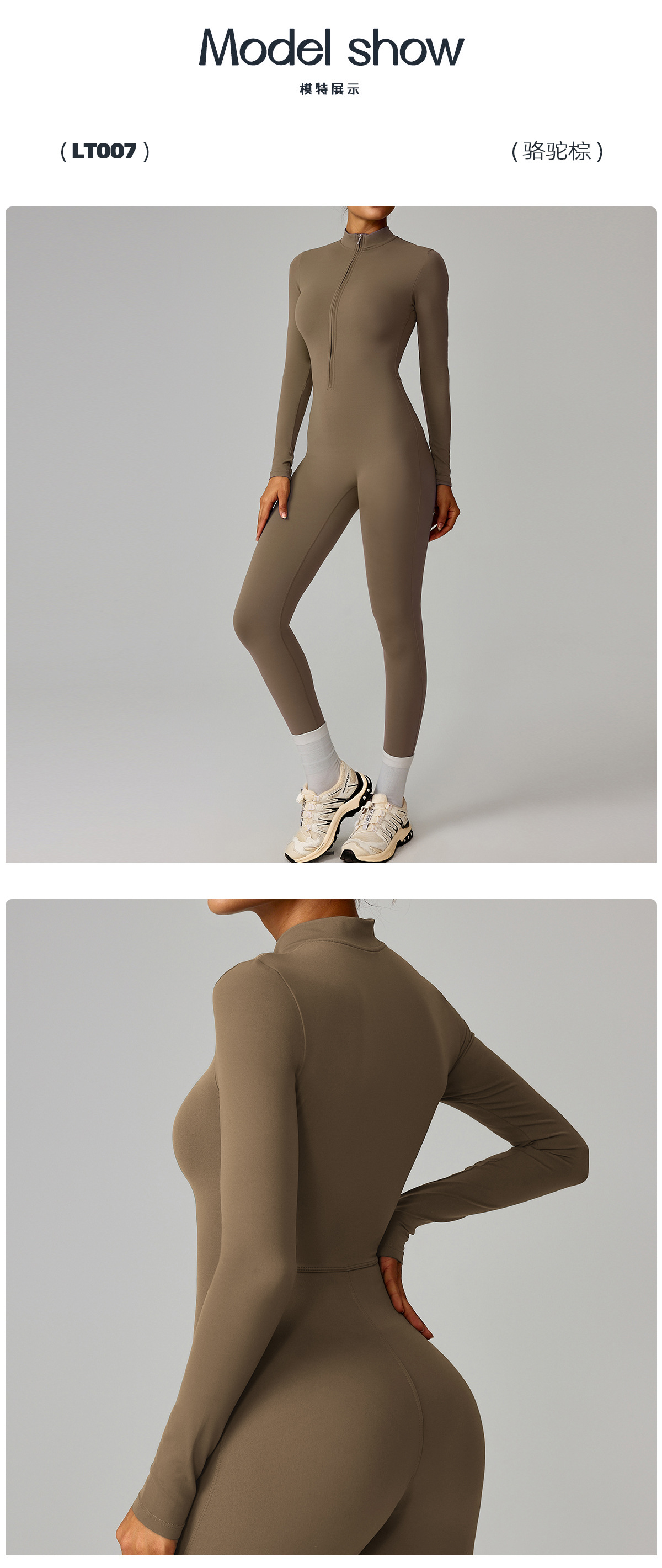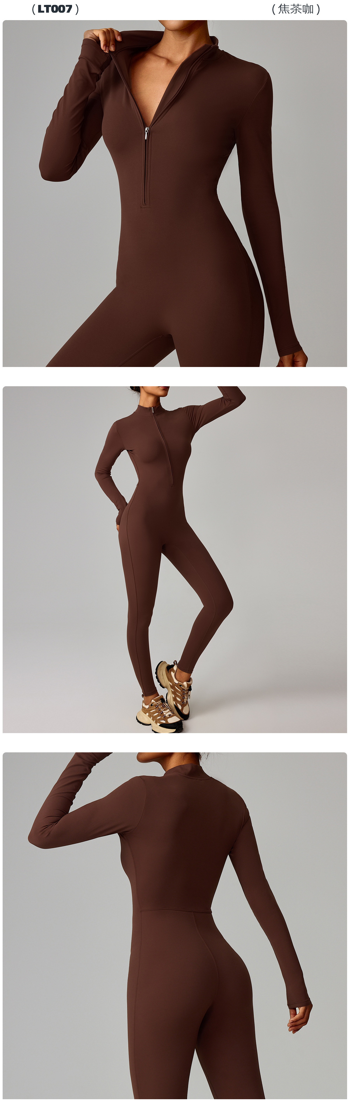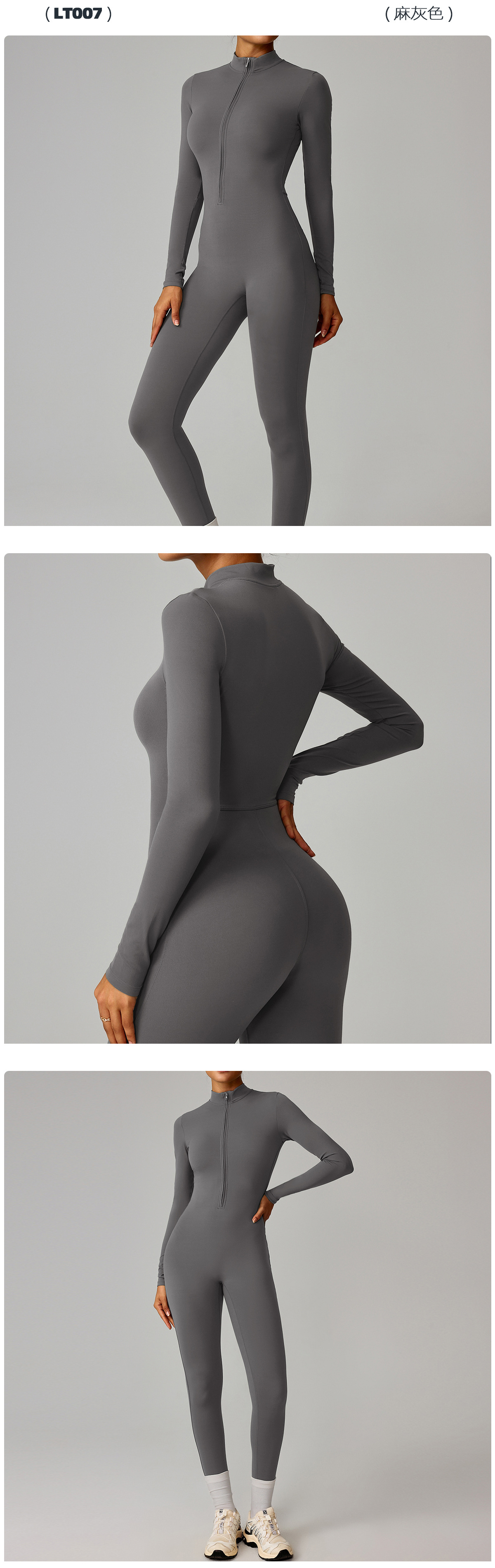 유럽과 미국의 지퍼 누드 긴팔 요가 점프 슈트 고강도 피트니스 러닝 스포츠 점프 슈트 8306스토어 가기
