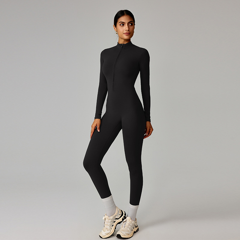 유럽과 미국의 지퍼 누드 긴팔 요가 점프 슈트 고강도 피트니스 러닝 스포츠 점프 슈트 8306