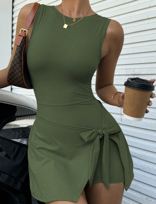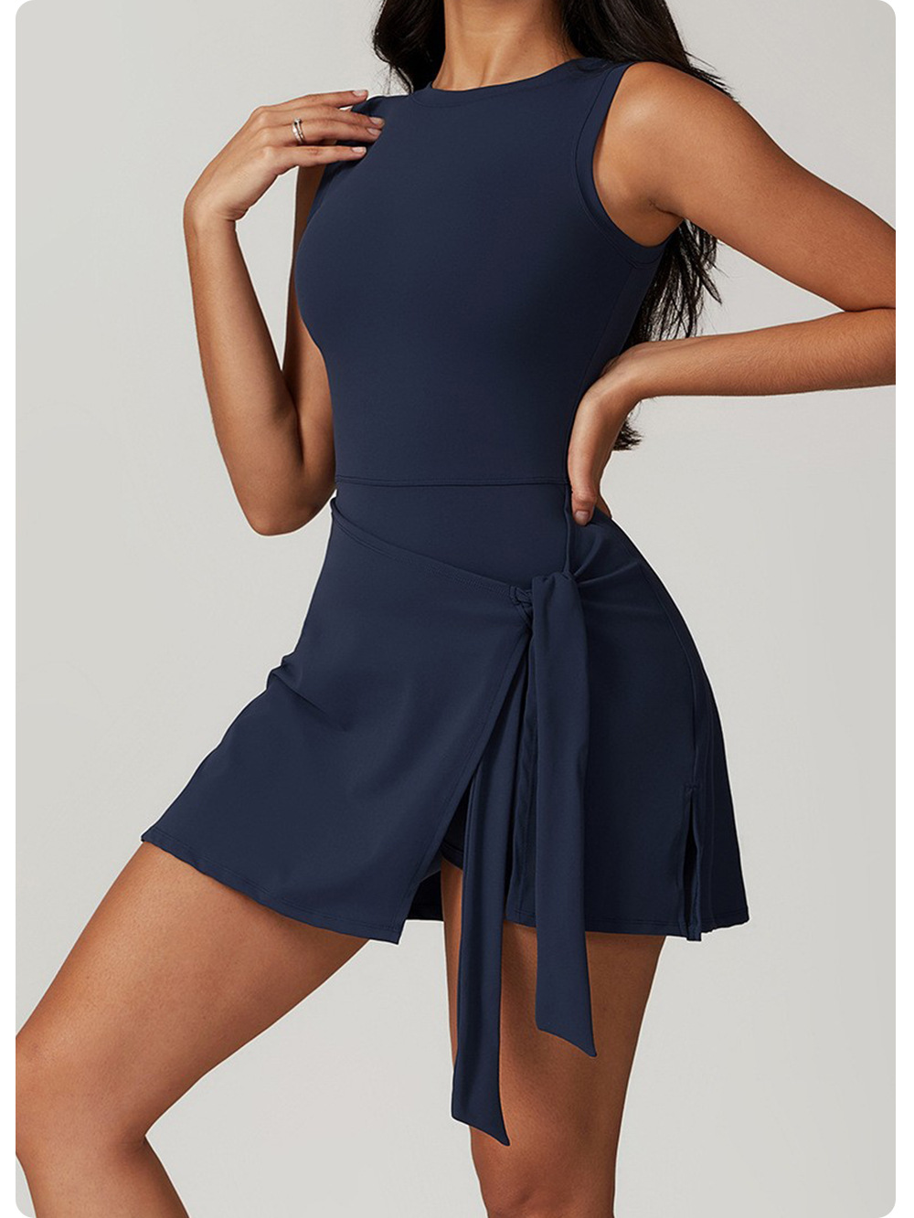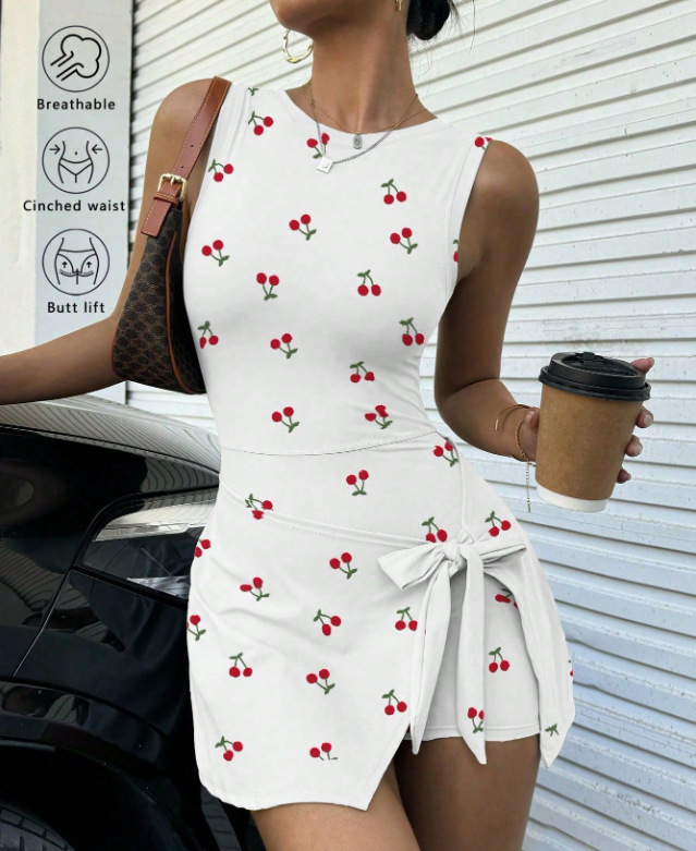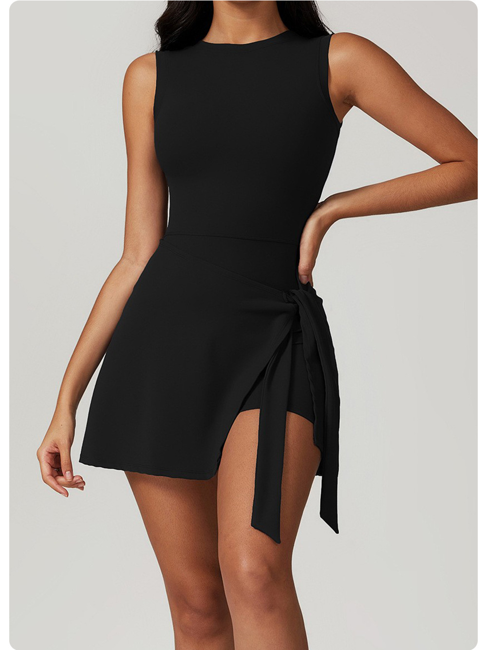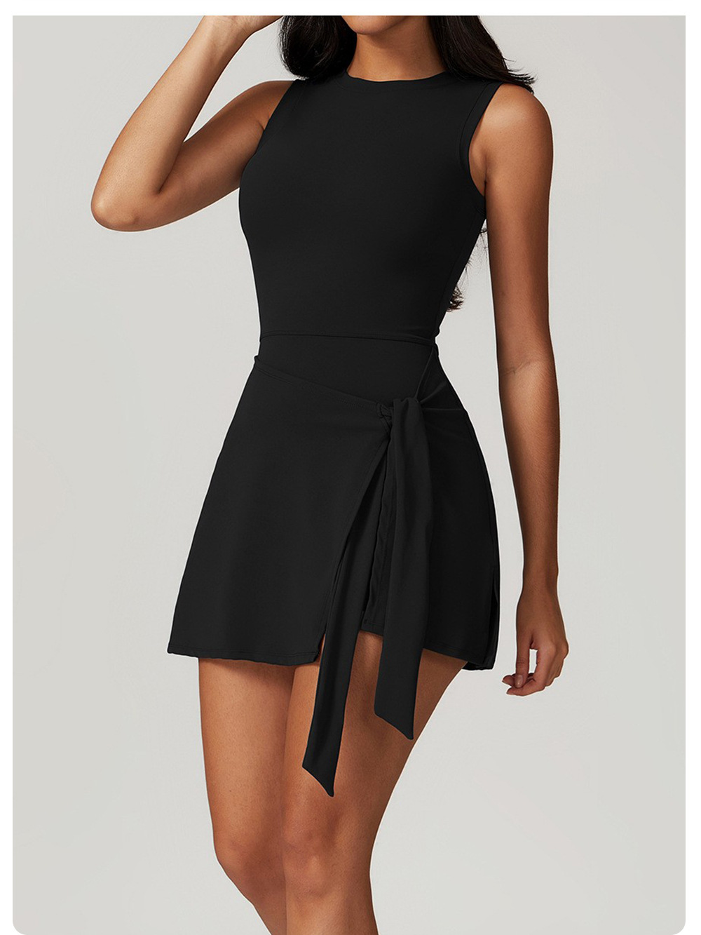 신상 페이크 투피스 노출방지 타이트 원피스 테니스 스커트, 슬림하고 신축성이 뛰어난 캐주얼 피트니스 백 요가 드레스스토어 가기