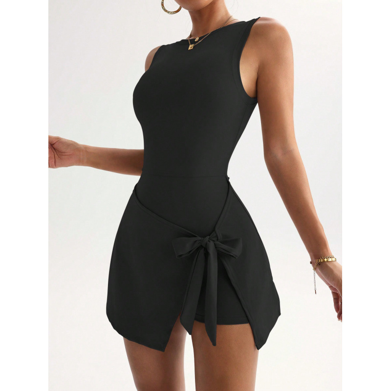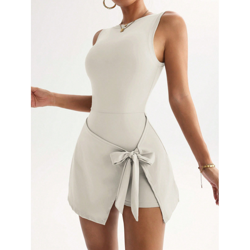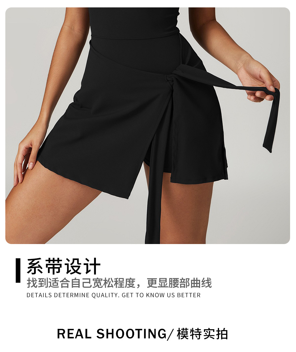 신상 페이크 투피스 노출방지 타이트 원피스 테니스 스커트, 슬림하고 신축성이 뛰어난 캐주얼 피트니스 백 요가 드레스