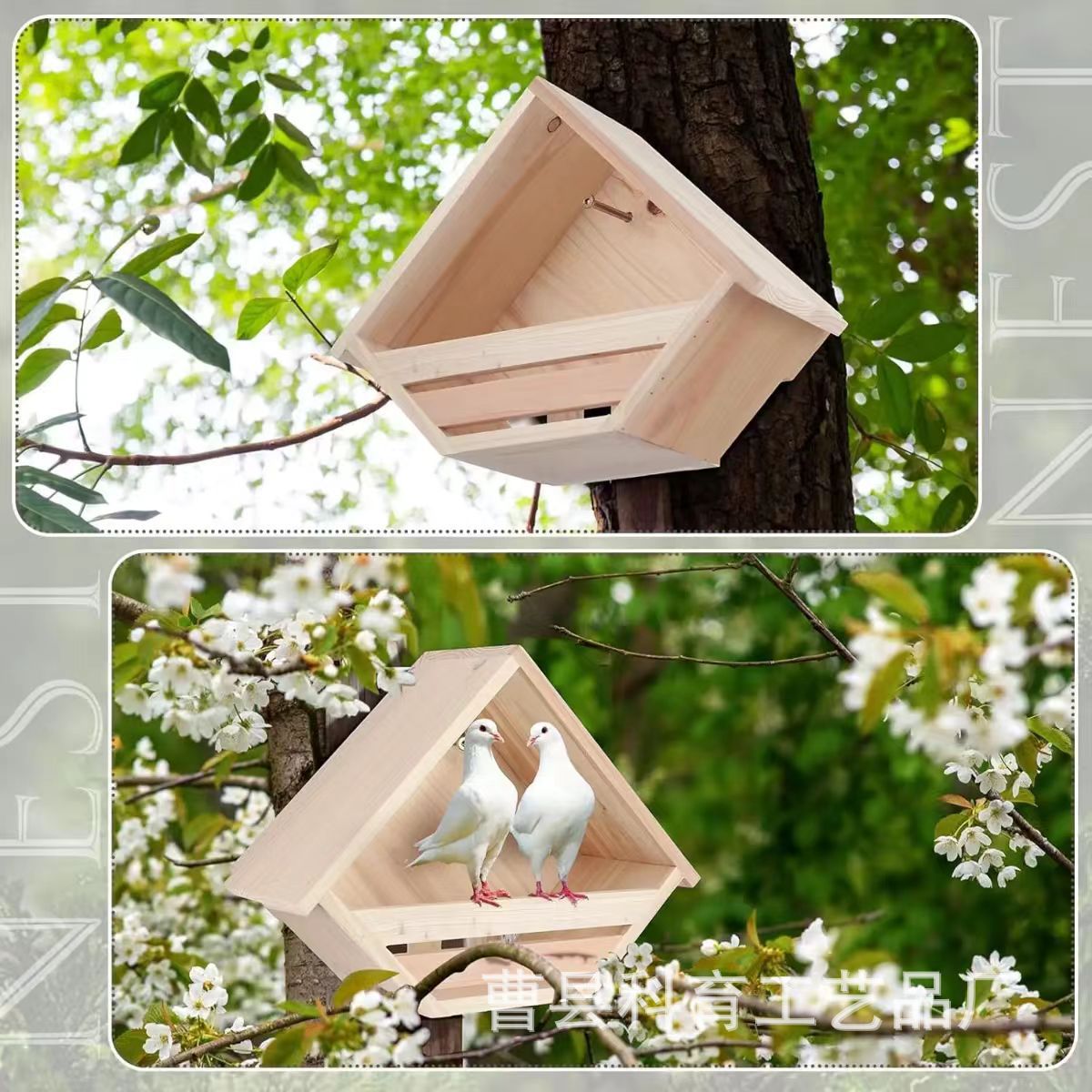나무 비둘기 새 집 새 빌라 야외 나무 비둘기 집 삼각형 오프닝 새장 플랫폼 정원 장식 둥지 상자