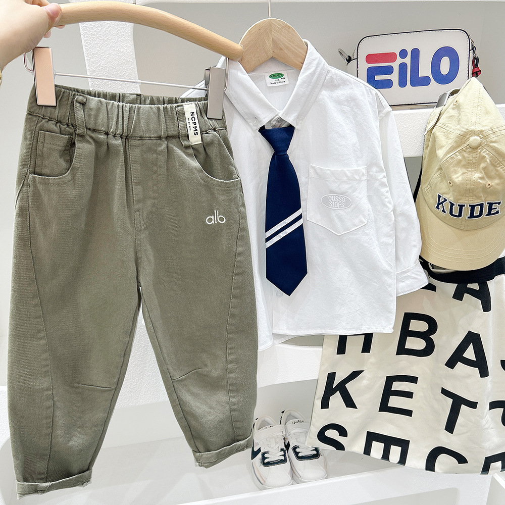 소년 알파벳 자수 캐주얼 바지 2025 가을 새로운 스타일 중대형 아동 가을 의류 트렌디 한 한국 스타일 느슨한 바지