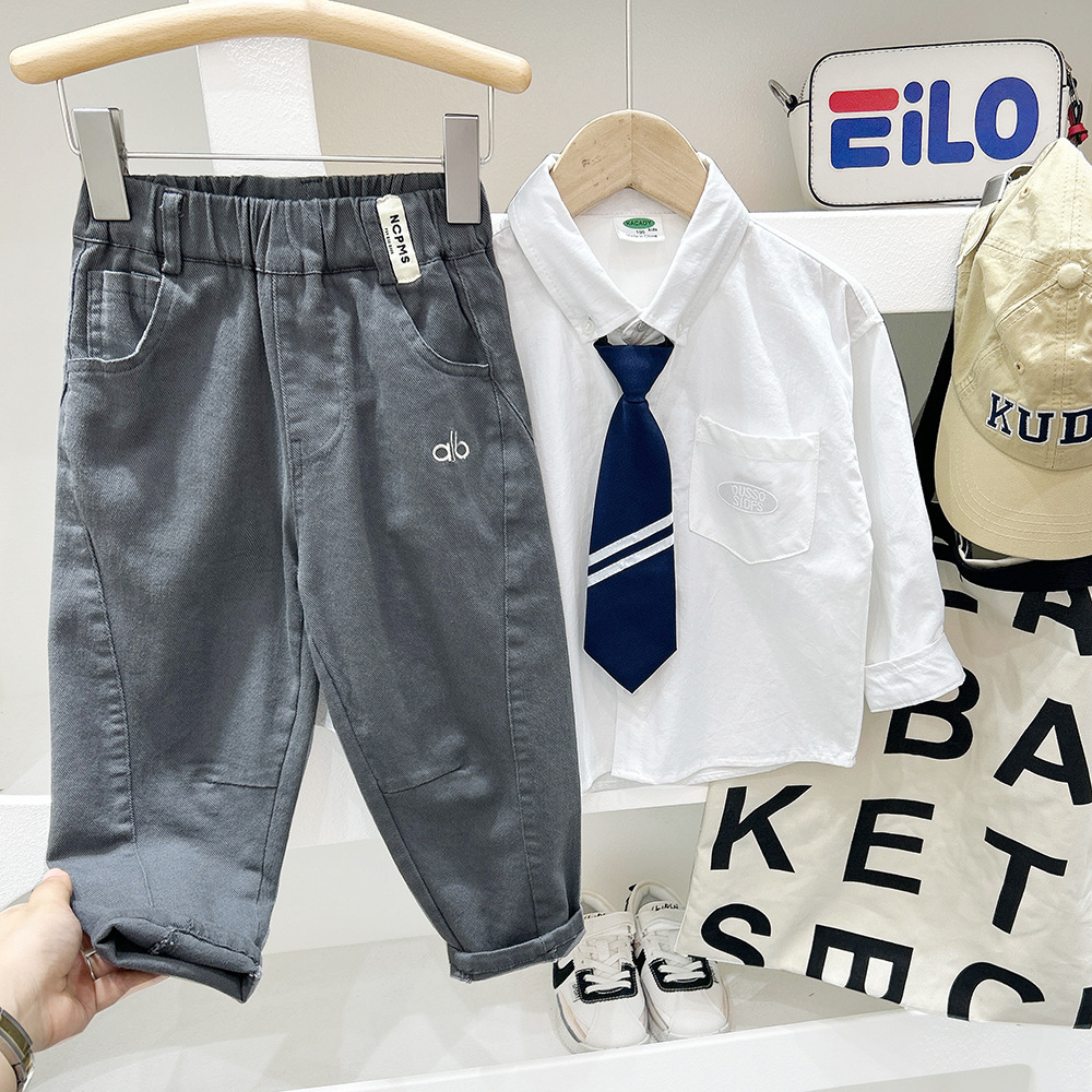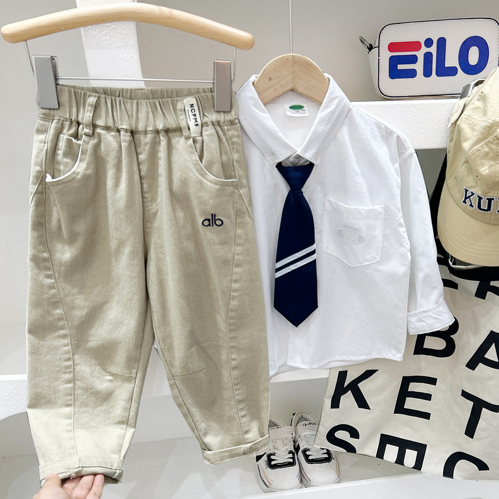 소년 알파벳 자수 캐주얼 바지 2025 가을 새로운 스타일 중대형 아동 가을 의류 트렌디 한 한국 스타일 느슨한 바지스토어 가기