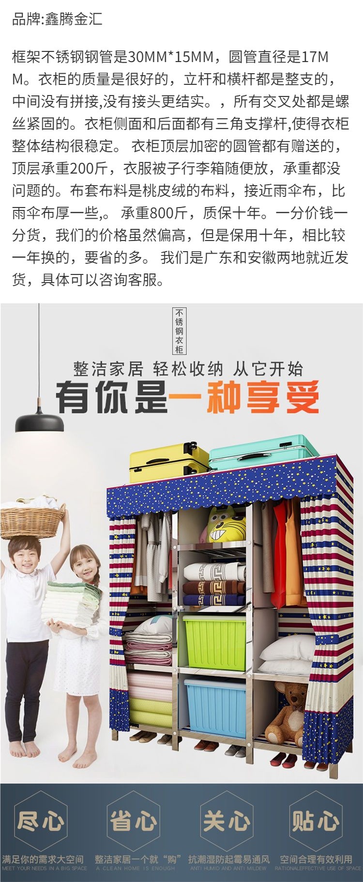 간단한 옷장 천 옷장 스테인레스 스틸 프레임 임대 집 두꺼운 강화 강철 파이프 조립 옷장 보관 공급스토어 가기