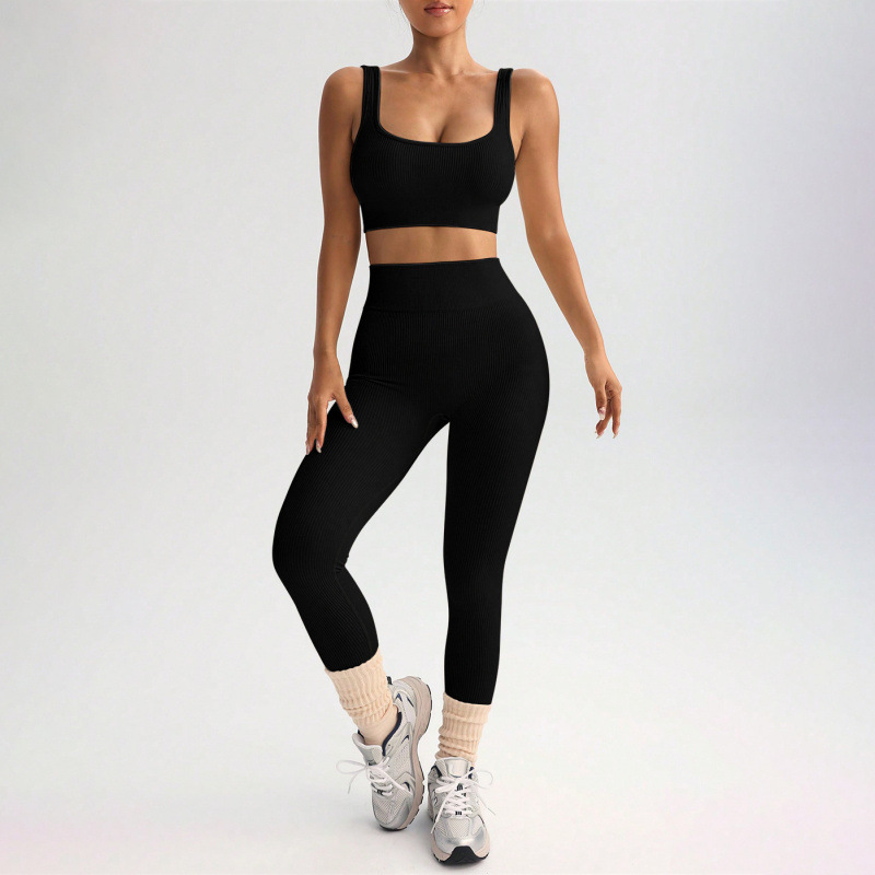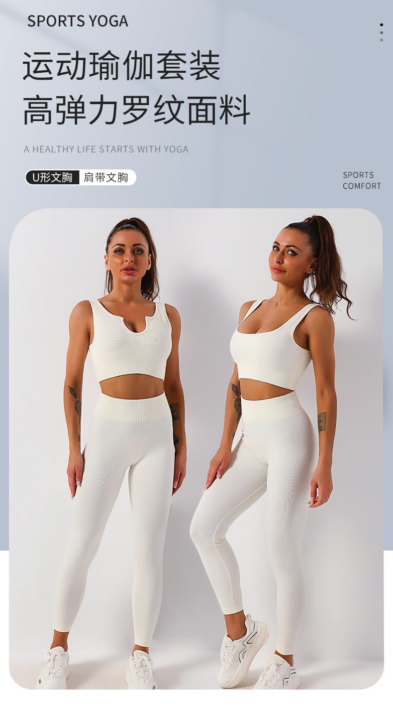 인기있는 유럽과 미국의 속건성 요가 의류 세트 충격 방지 스포츠 브라 요가 조끼 요가 바지 피트니스 바지