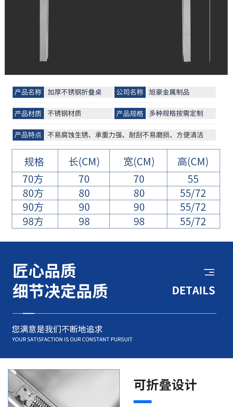 스테인레스 스틸 접이식 테이블 휴대용 바베큐 테이블 야외 스톨 상업용 야시장 스톨 사각 테이블 사각 식탁