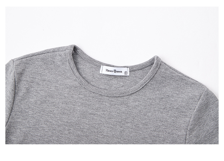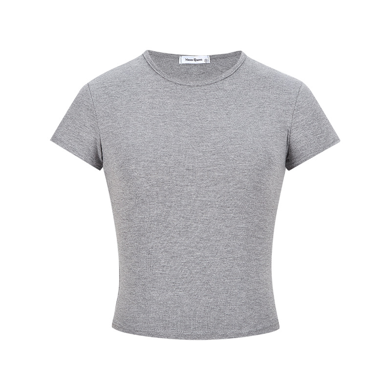Moses Queen Moses Queen 릴렉스 그레이 라운드 넥 슬림핏 짧은 티셔츠 여성 여름 타이트 슬리밍 탑