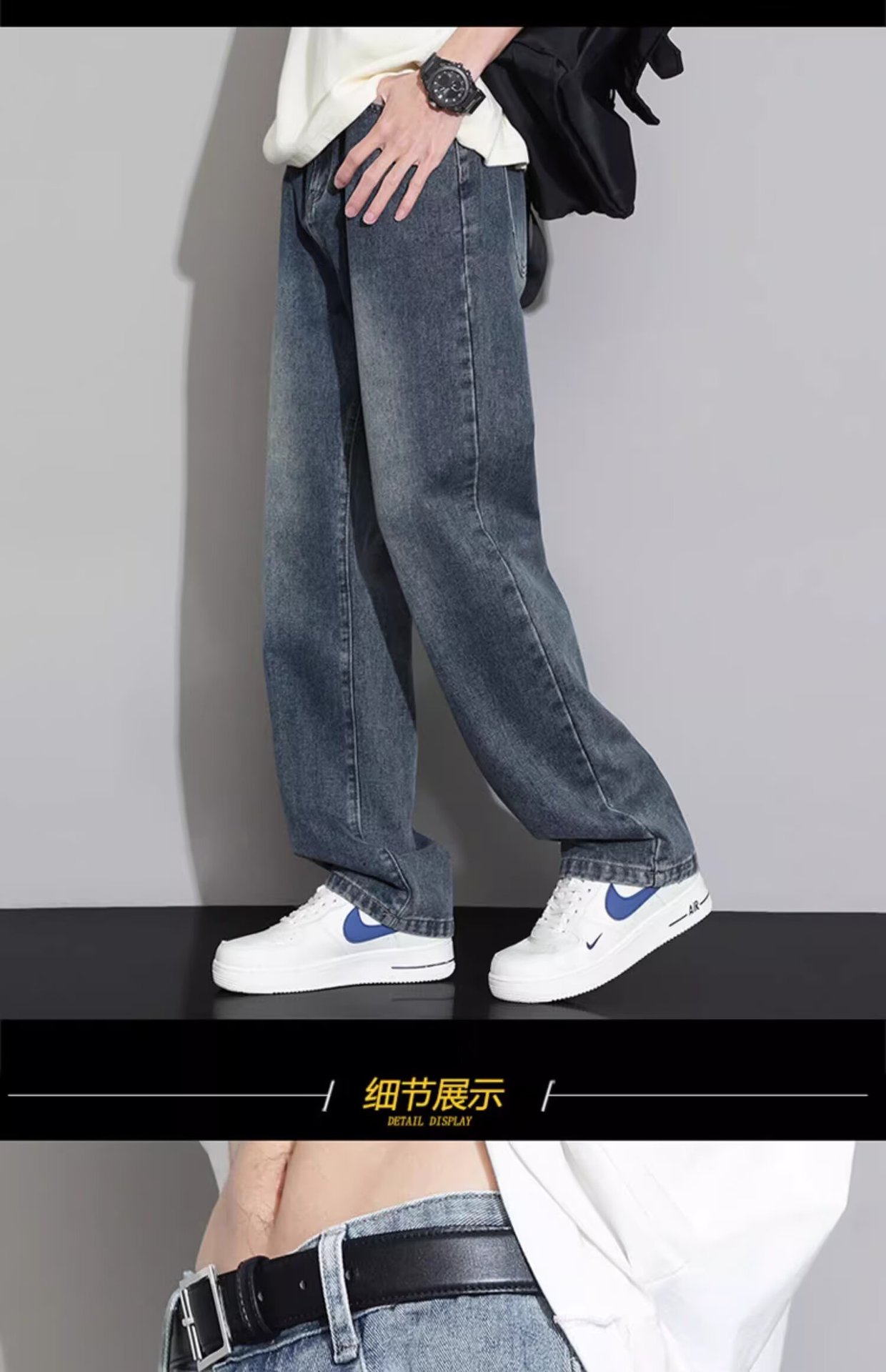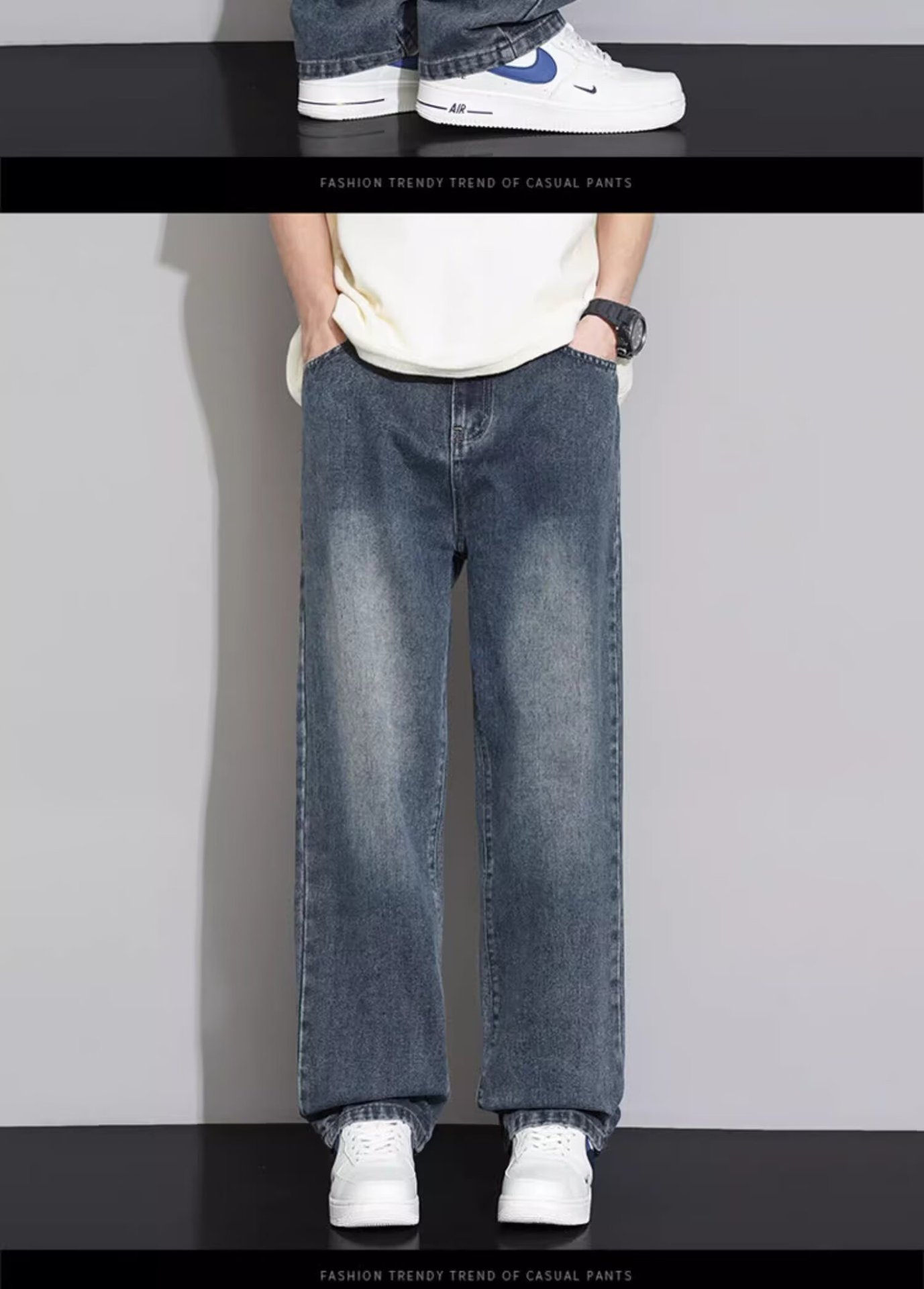 셔츠, 의류, 청바지, 남성용 스트레이트 루즈 아메리칸 하이 스트리트 스팟 도매 캐주얼 와이드 레그 슬리밍 롱 팬츠스토어 가기