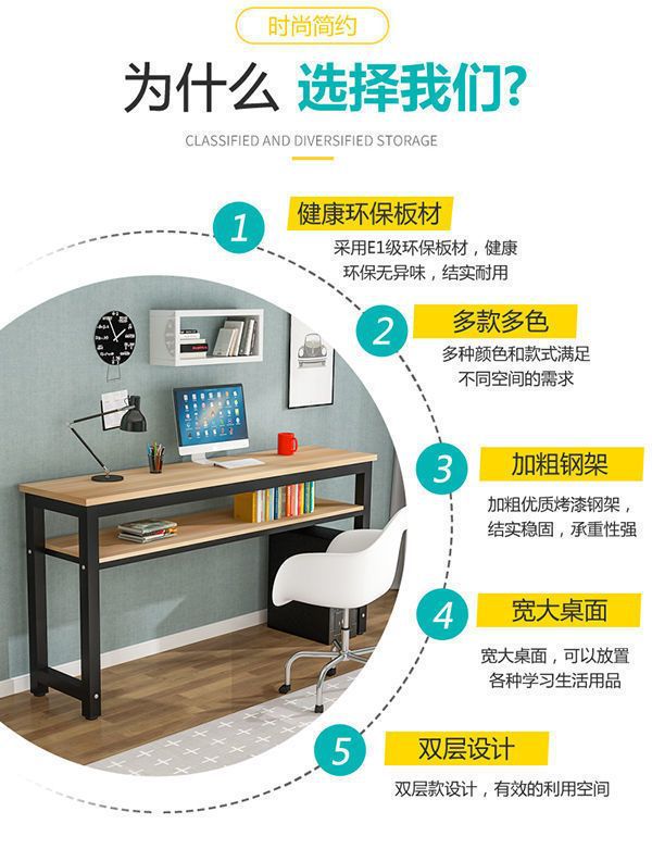 간단한 더블 레이어 컴퓨터 책상 학생 책상 가정 학습 테이블 좁은 테이블 침실 테이블 간단한 긴 테이블스토어 가기
