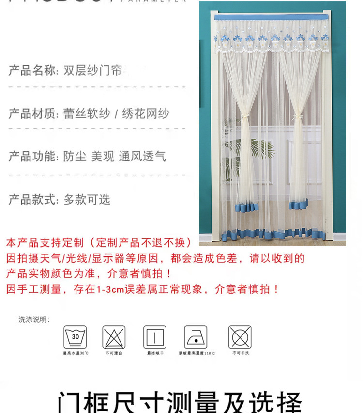 사계절 펀치 없는 모기 방지 도어 커튼, 이중 통기성 레이스 거즈 도어 커튼, 침실 및 서재용 무소음 프라이버시 파티션 거즈 커튼스토어 가기