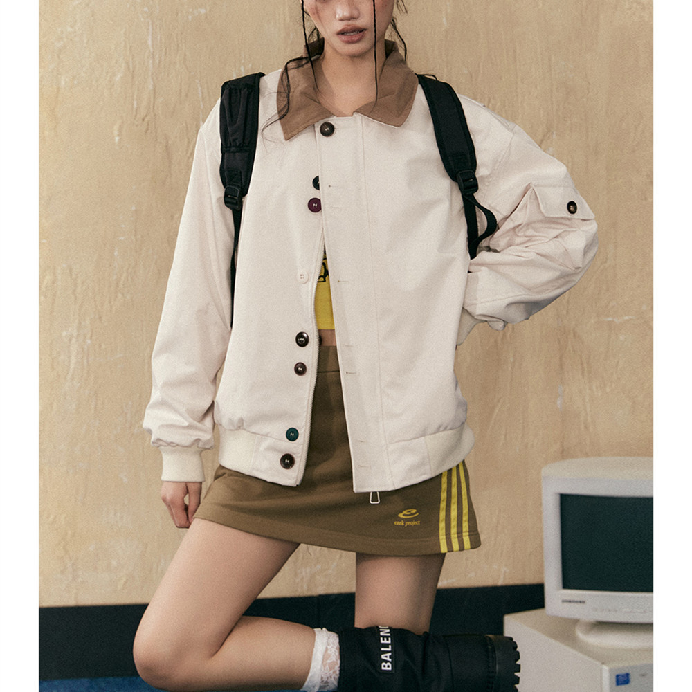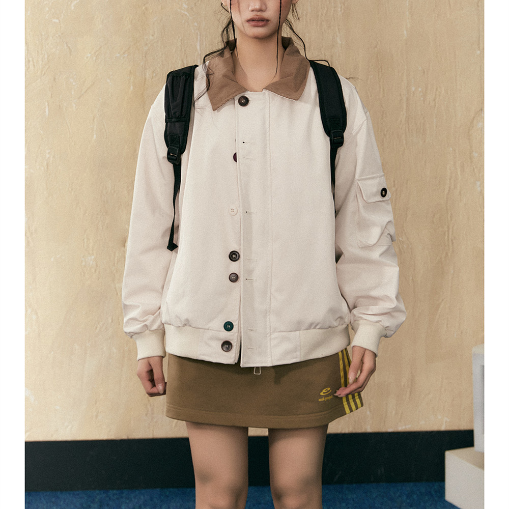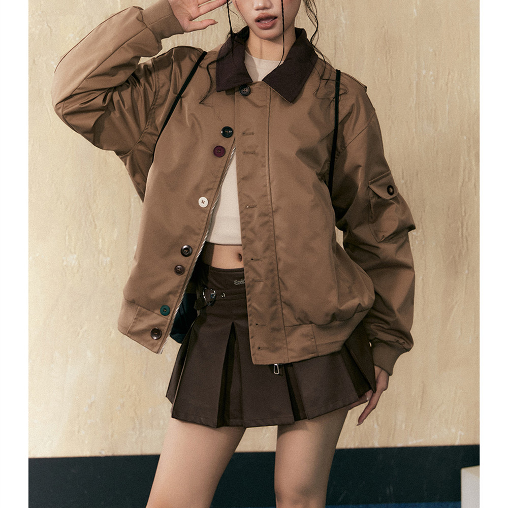 메일라드 브라운 클린핏 콘트라스트 컬러 재킷 여성 봄, 가을 디자인 라펠 다용도 틈새 탑 트렌디