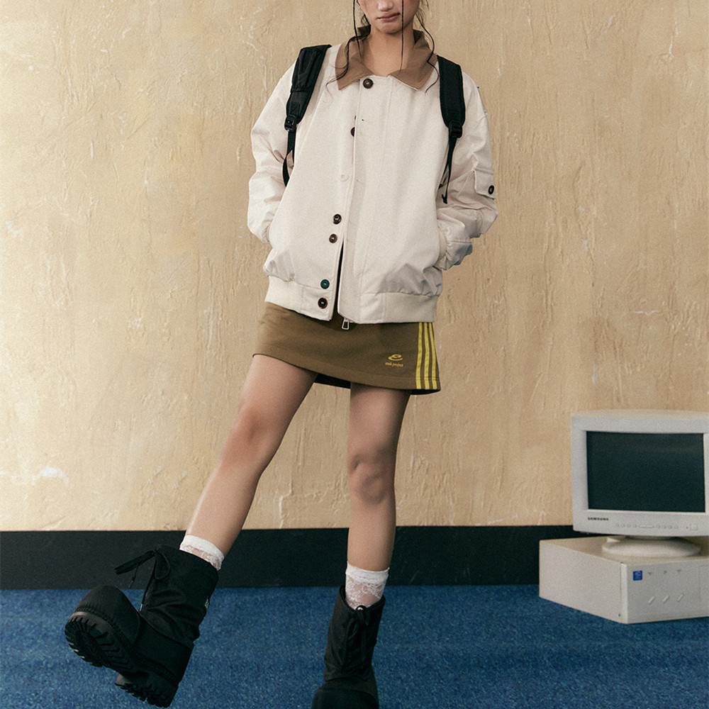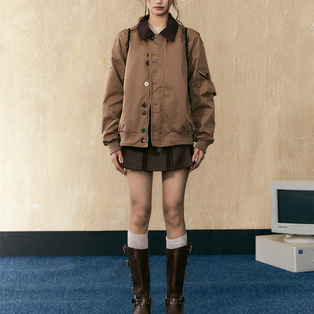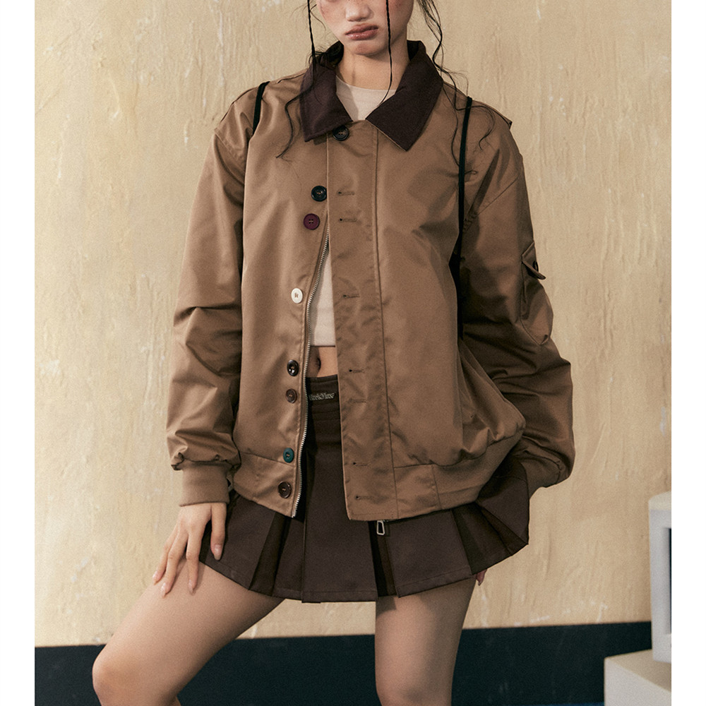 메일라드 브라운 클린핏 콘트라스트 컬러 재킷 여성 봄, 가을 디자인 라펠 다용도 틈새 탑 트렌디스토어 가기