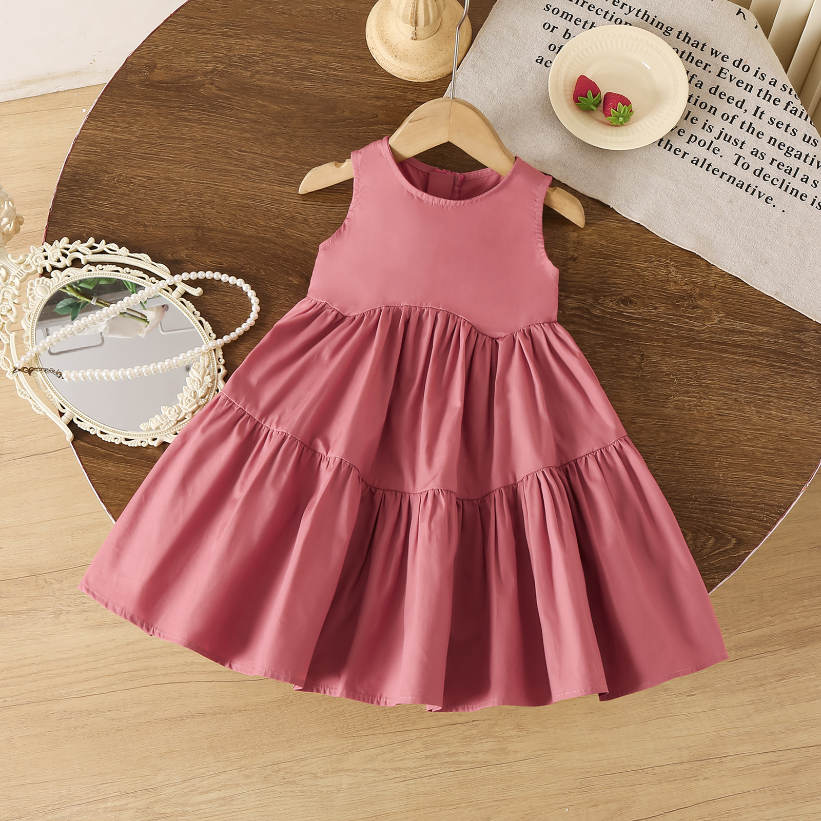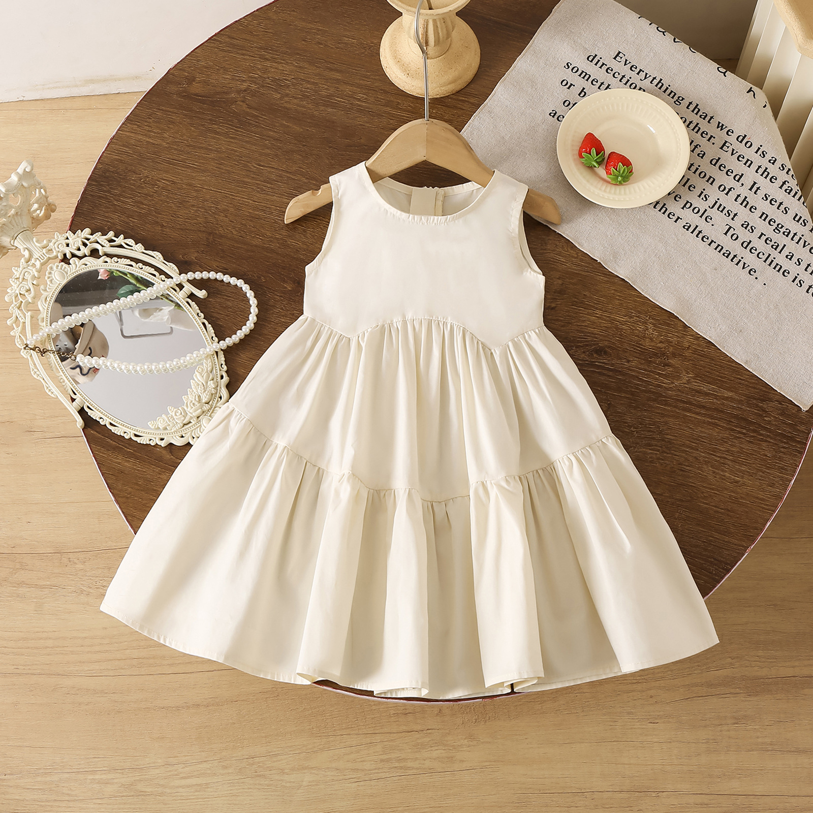 여름 새 여자 민소매 드레스 아기 조끼 드레스 유행하고 다재다능한 통기성 민소매 공주 드레스스토어 가기