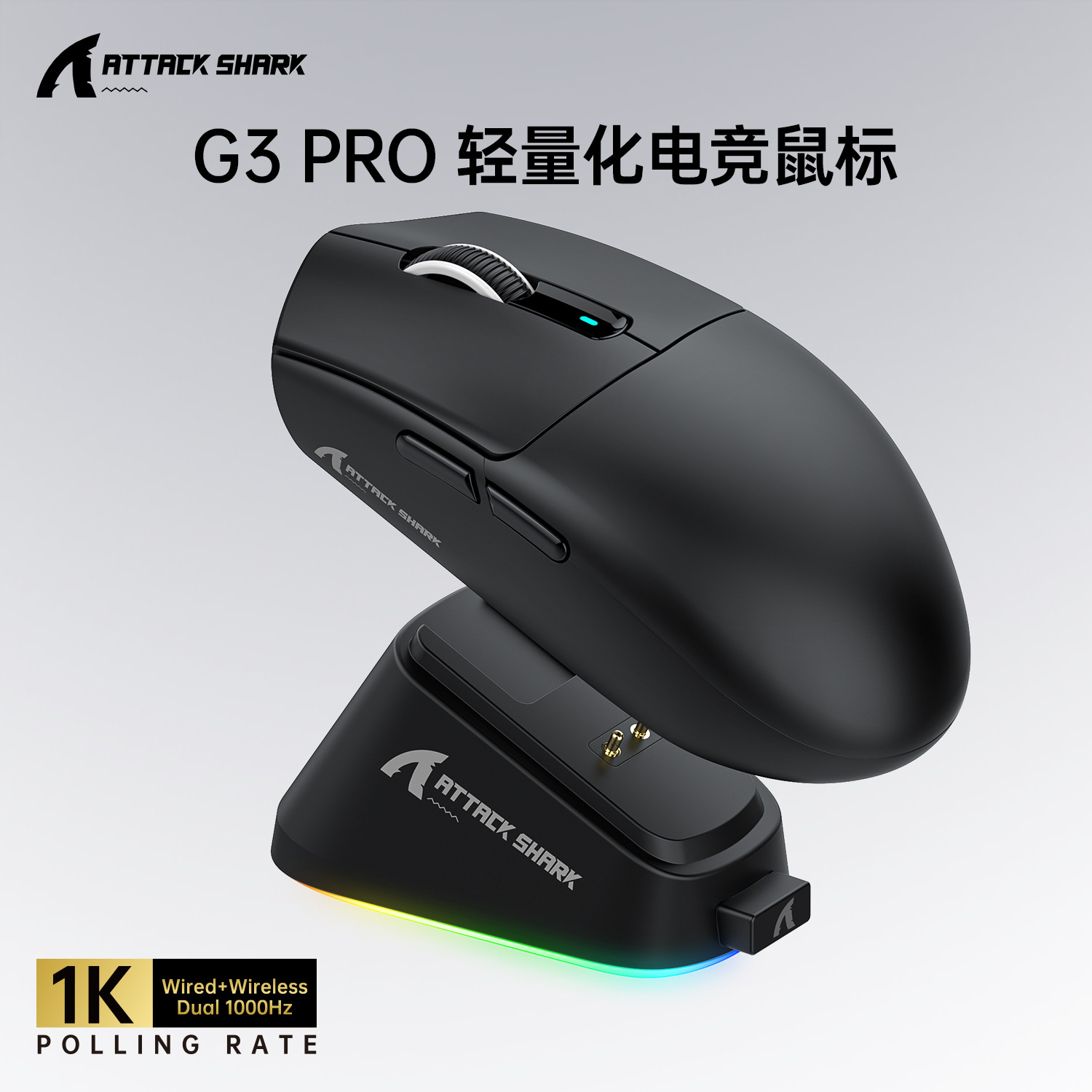 攻击鲨G3PRO带RGB无线充电底座无线三模鼠标