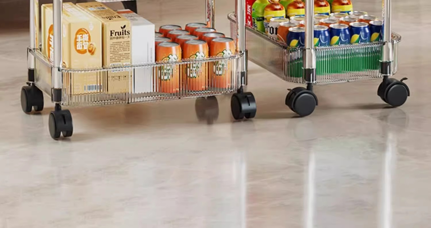아크릴 스낵 보관 랙 바닥에서 천장까지 다층 이동식 트롤리 화장품 캐비닛 침실 거실 보관 랙