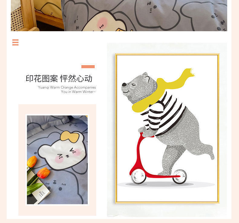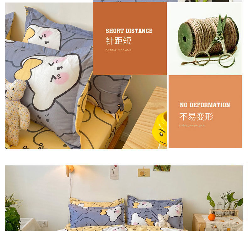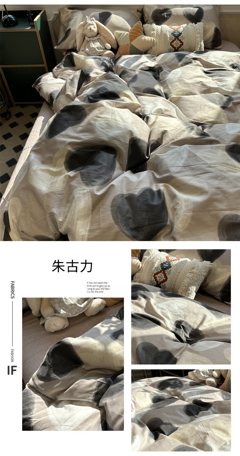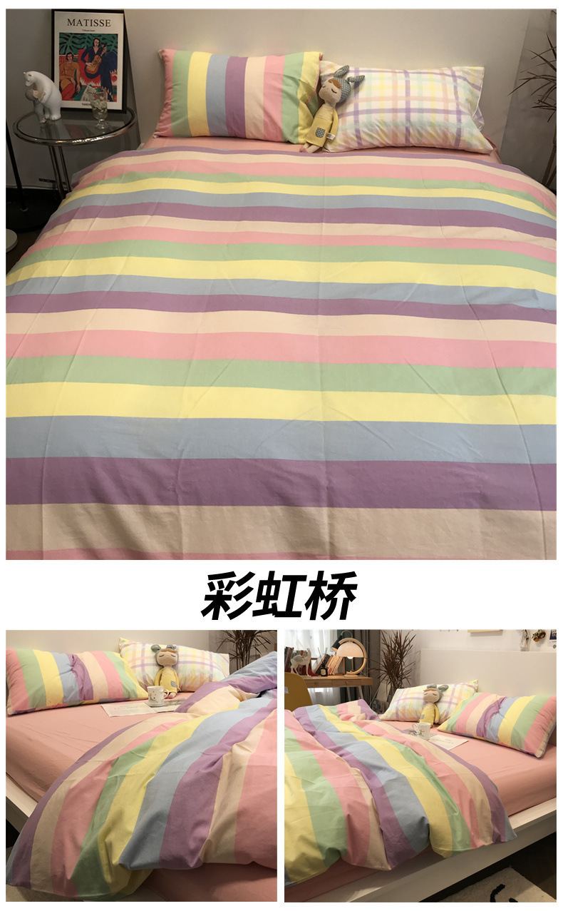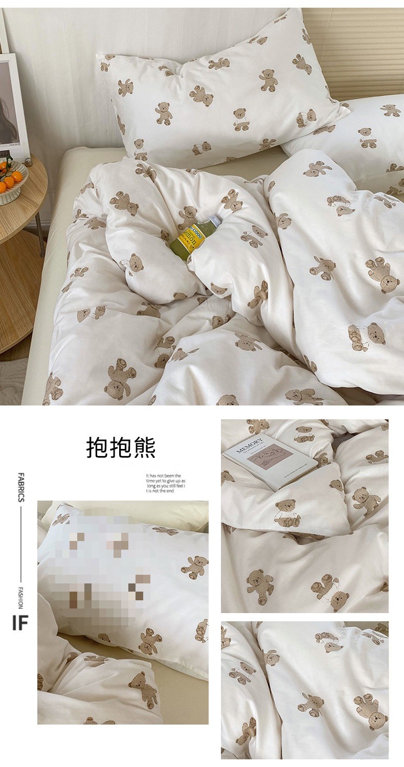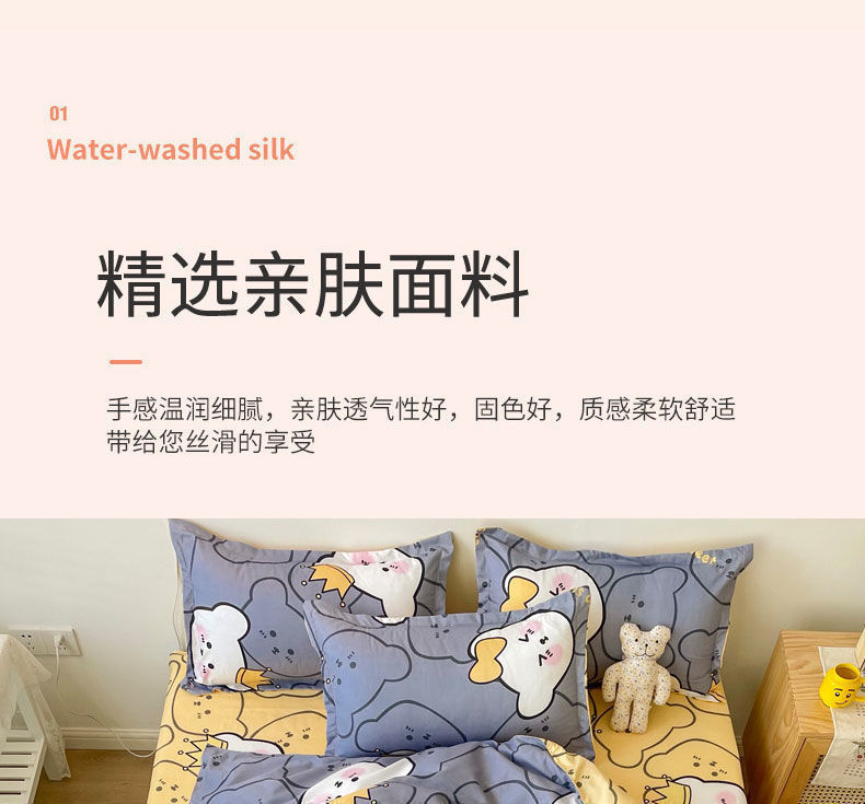 워시드 코튼 4종세트, 도톰한 사계절 이불커버, 침대시트, 학생기숙사 3종세트, 심플한 피부친화 침구스토어 가기