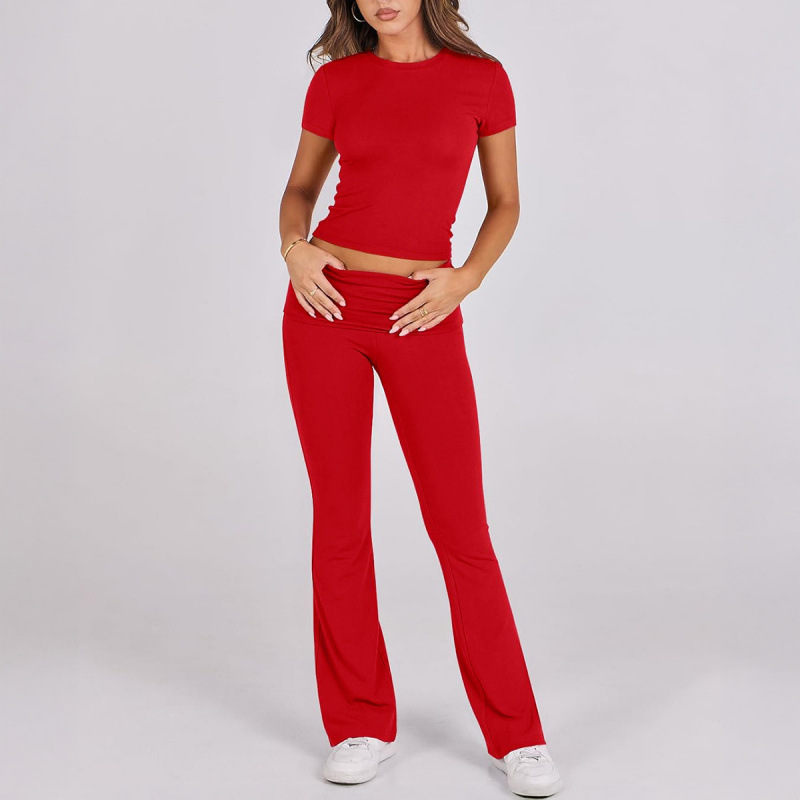 국경 간 유럽과 미국 의류 2025 봄 여름 대외 무역 캐주얼 단색 슬림 반팔 바지 정장스토어 가기