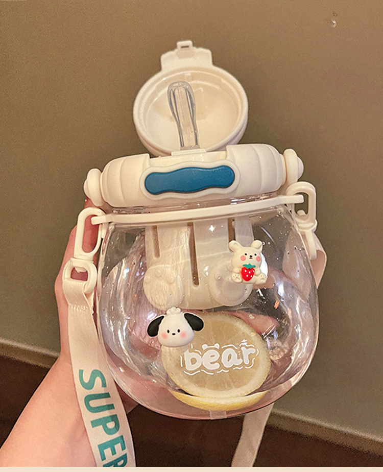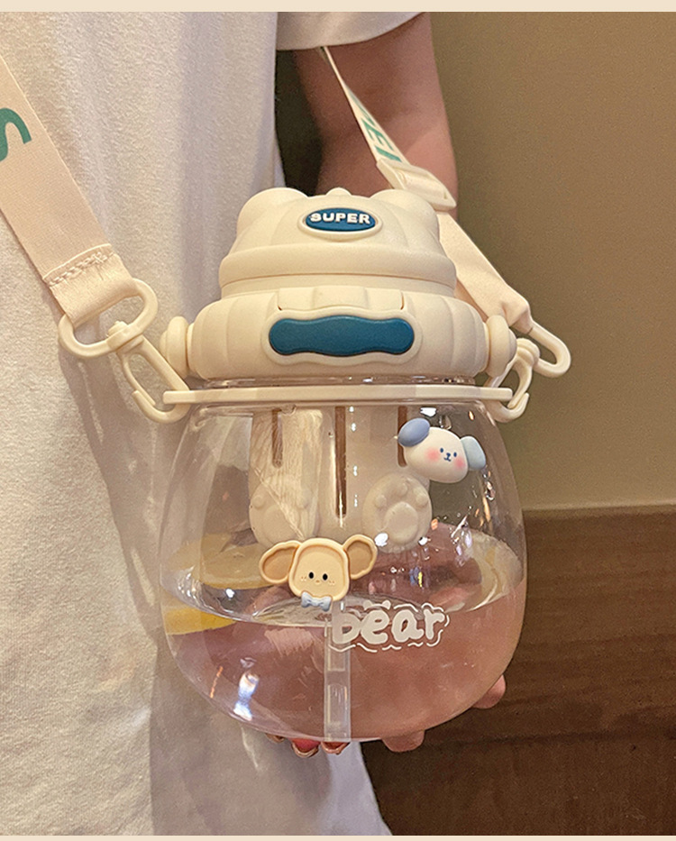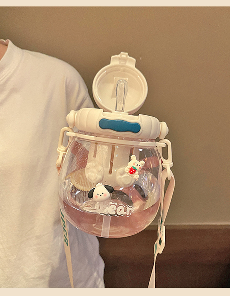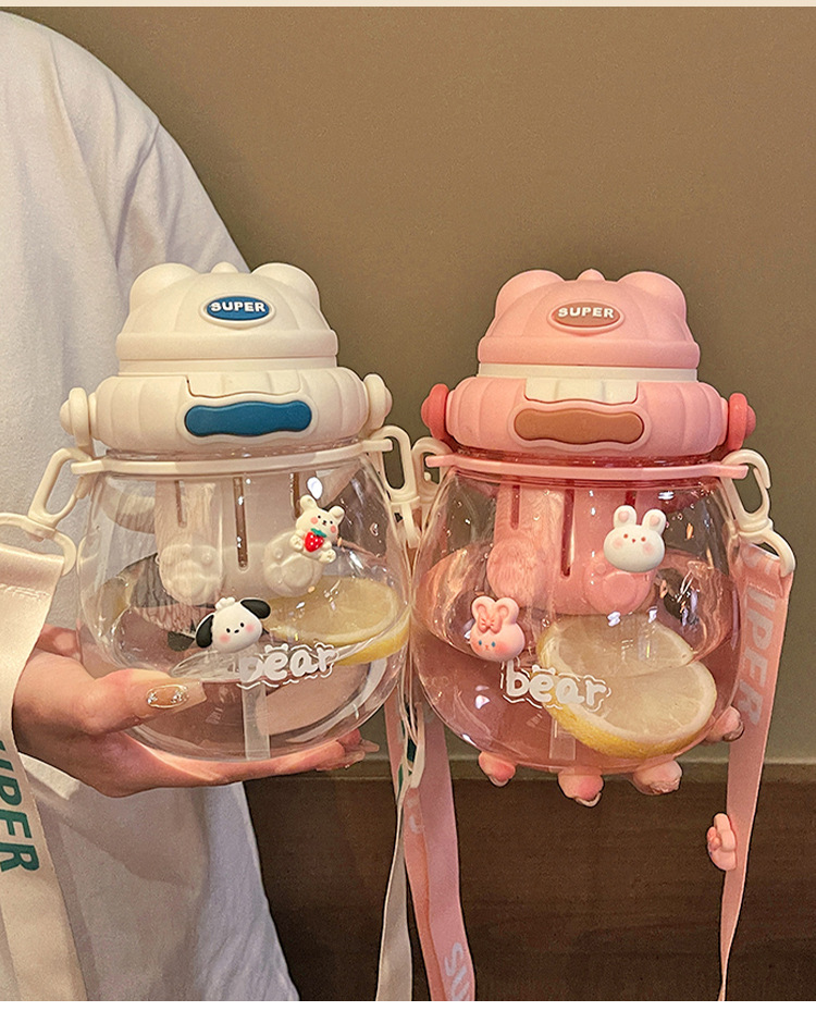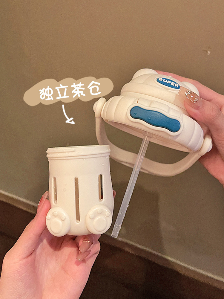 여자아이를 위한 귀여운 물컵, 고급스러운 빨대, 배 컵, 대용량 차와 물 분리 찻잔