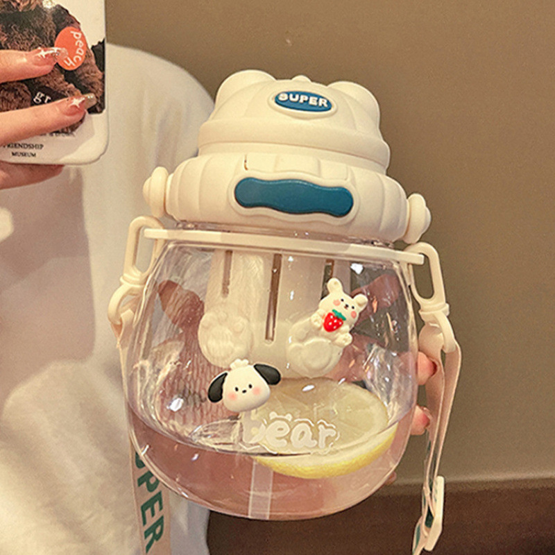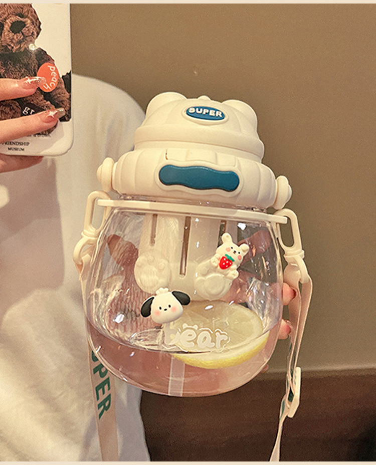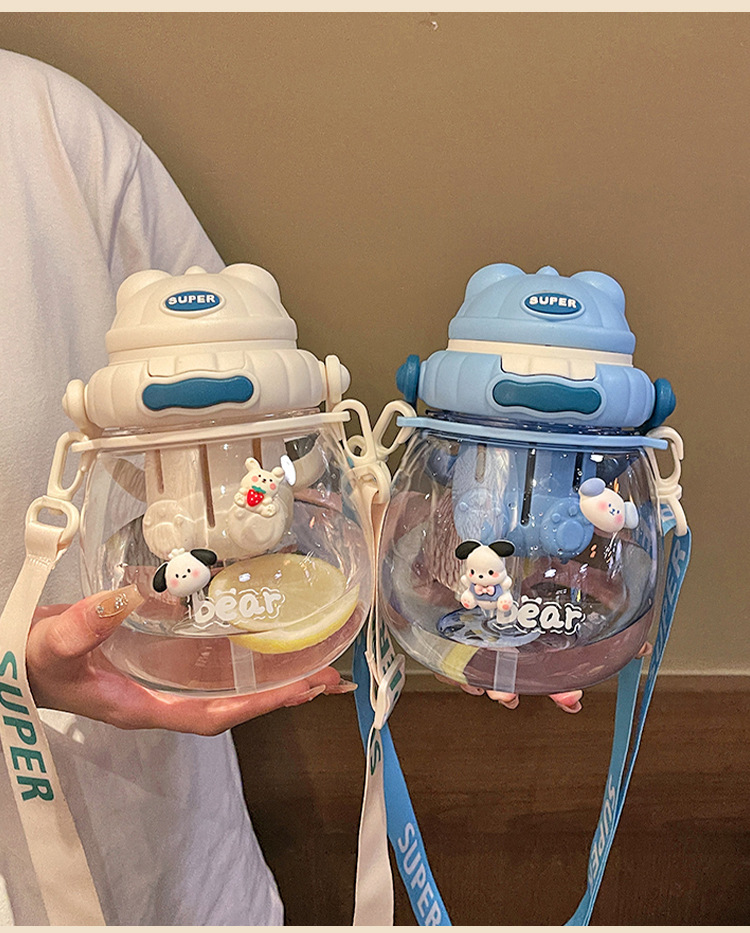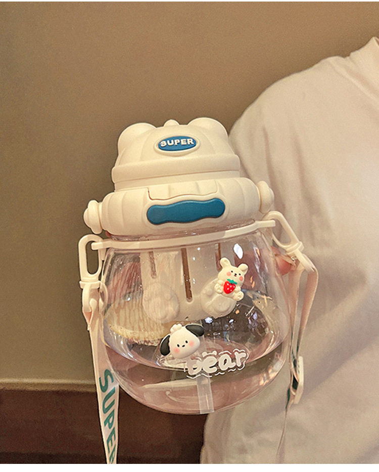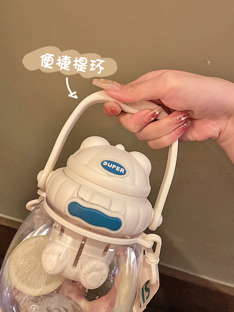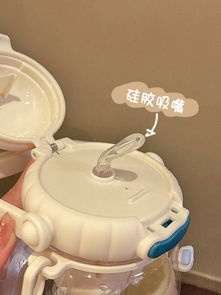 여자아이를 위한 귀여운 물컵, 고급스러운 빨대, 배 컵, 대용량 차와 물 분리 찻잔