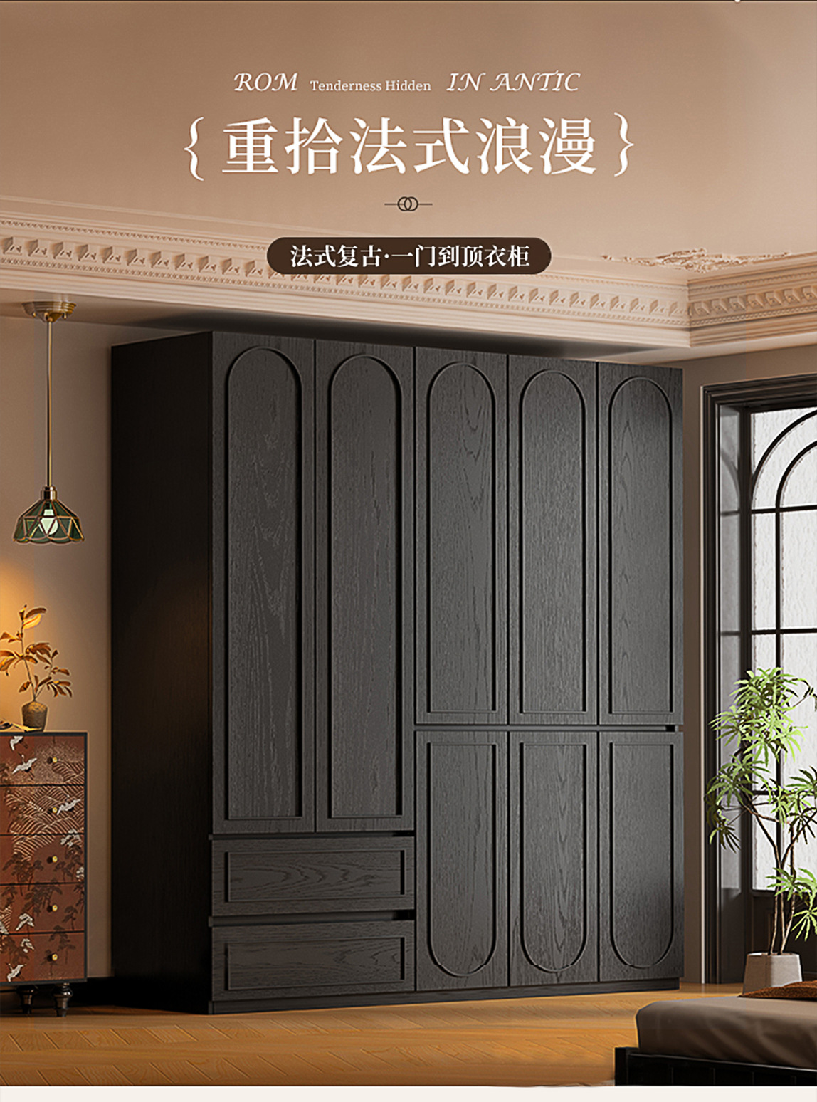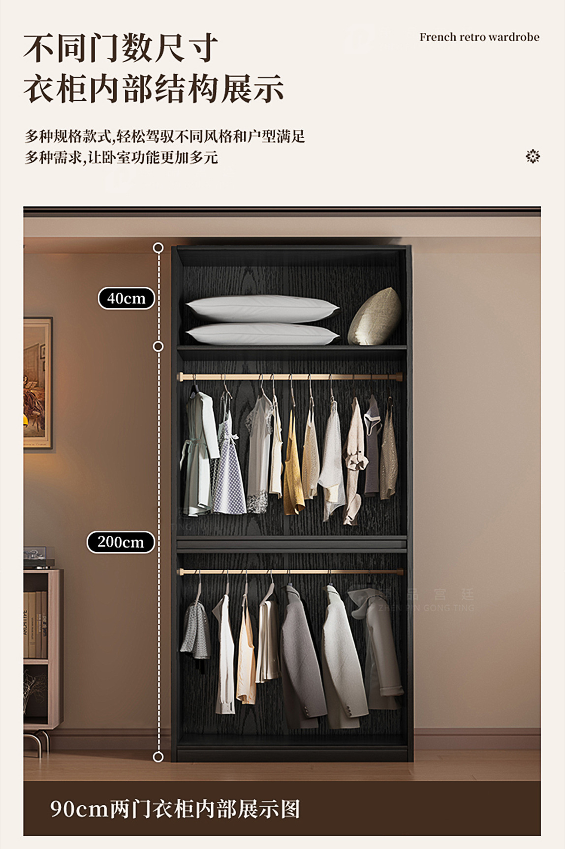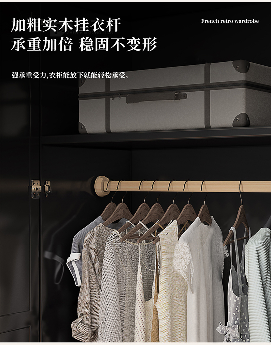 프랑스 복고풍 전체 나무 문 옷장 홈 침실 작은 아파트 스윙 도어 조합 대용량 저장 보관 캐비닛