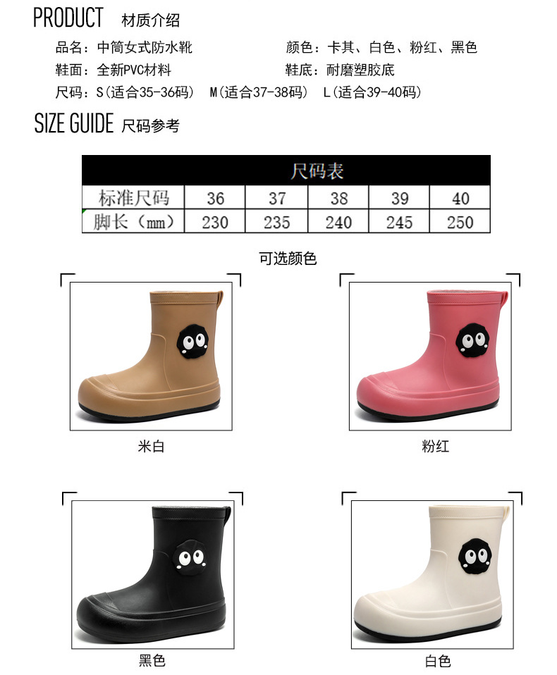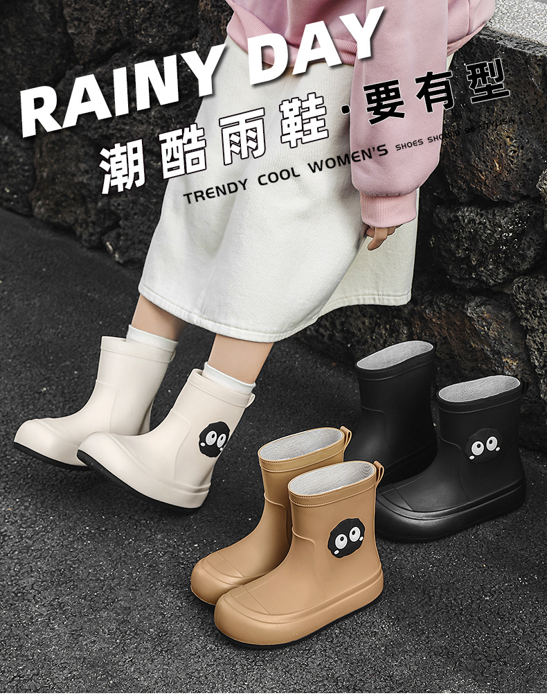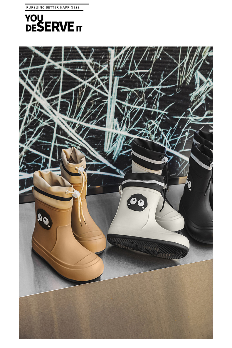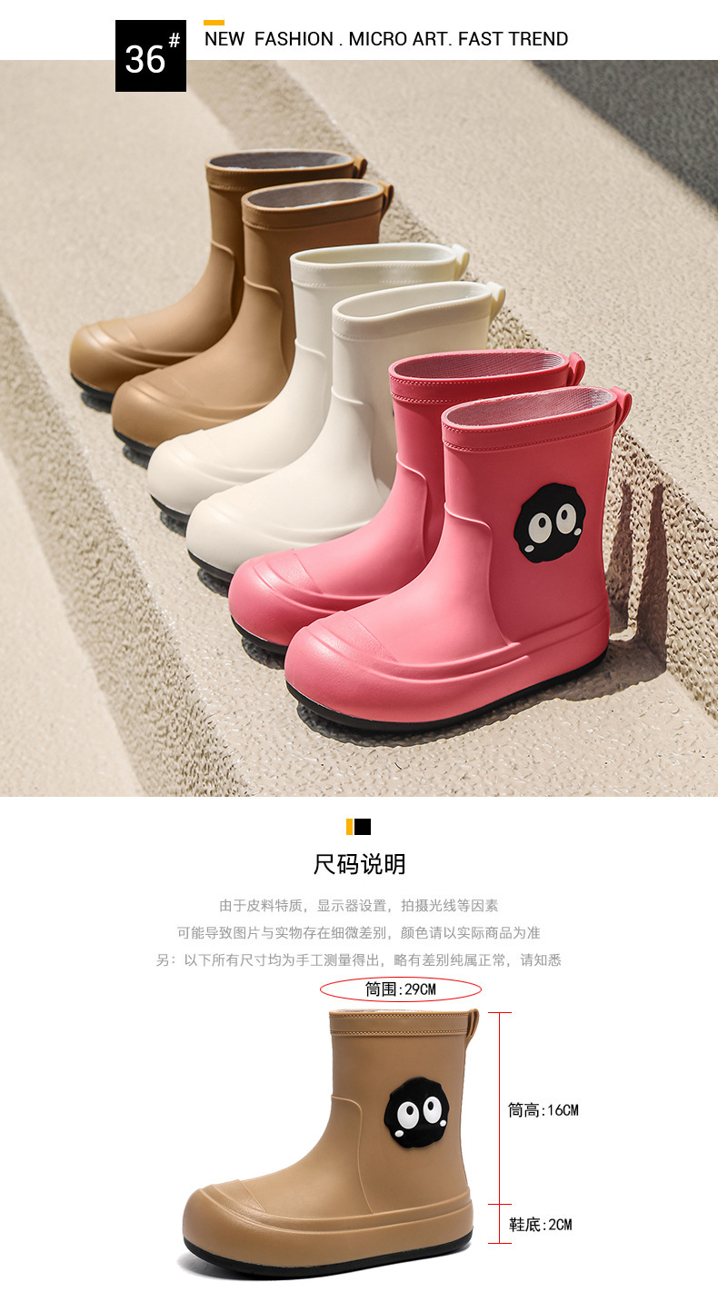 여학생, 중대형 어린이를 위한 일본의 귀여운 어린이 부모-자식 장화, 미끄럼 방지 부드러운 밑창 장화, 플랫 밑창 방수 신발