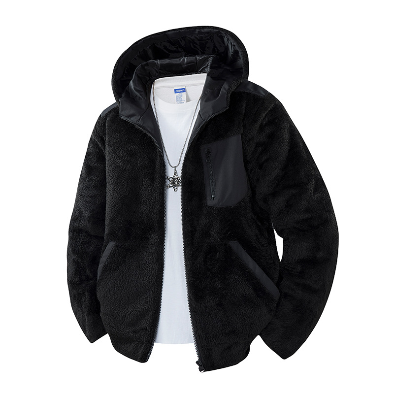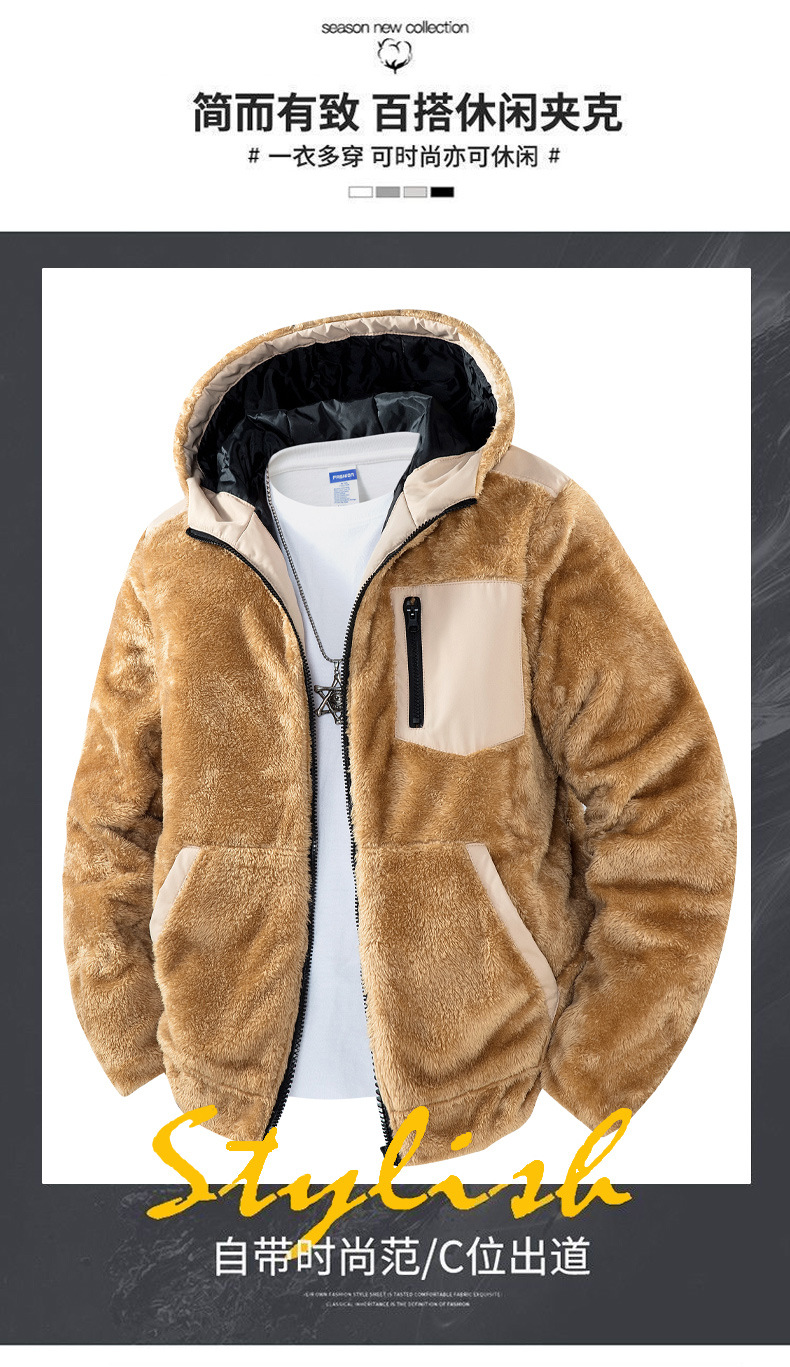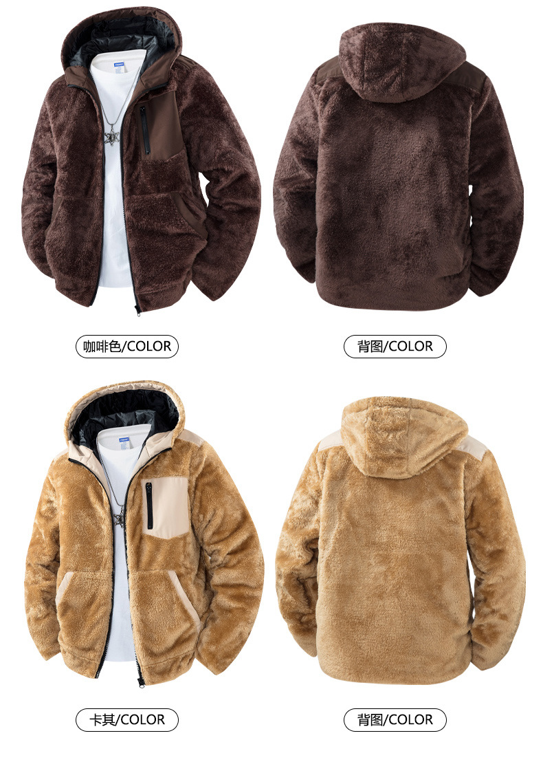 ​ ​ 2025 가을, 겨울 남성 후드 양털 카디건 재킷 솔리드 컬러 두꺼운 항온 스웨트 재킷 크로스 보더