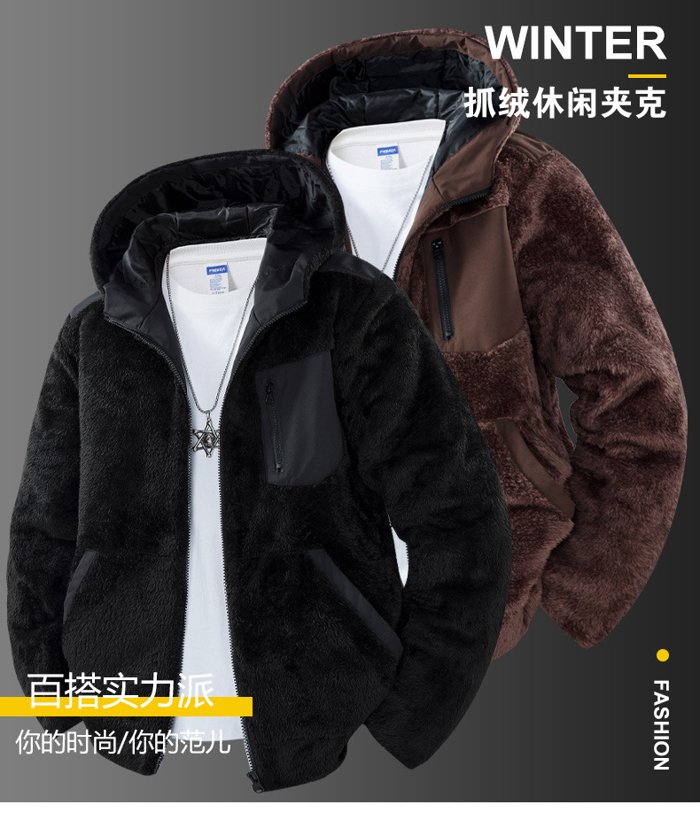 ​ ​ 2025 가을, 겨울 남성 후드 양털 카디건 재킷 솔리드 컬러 두꺼운 항온 스웨트 재킷 크로스 보더스토어 가기