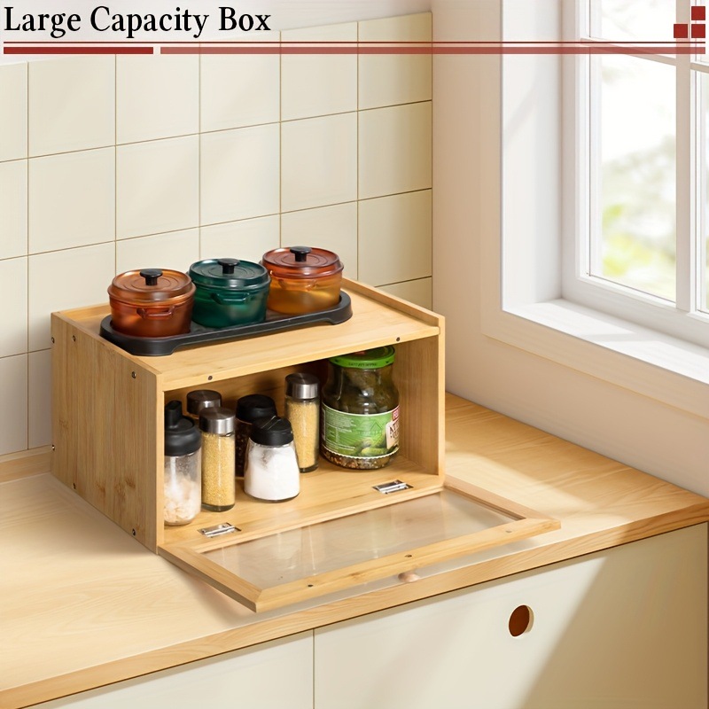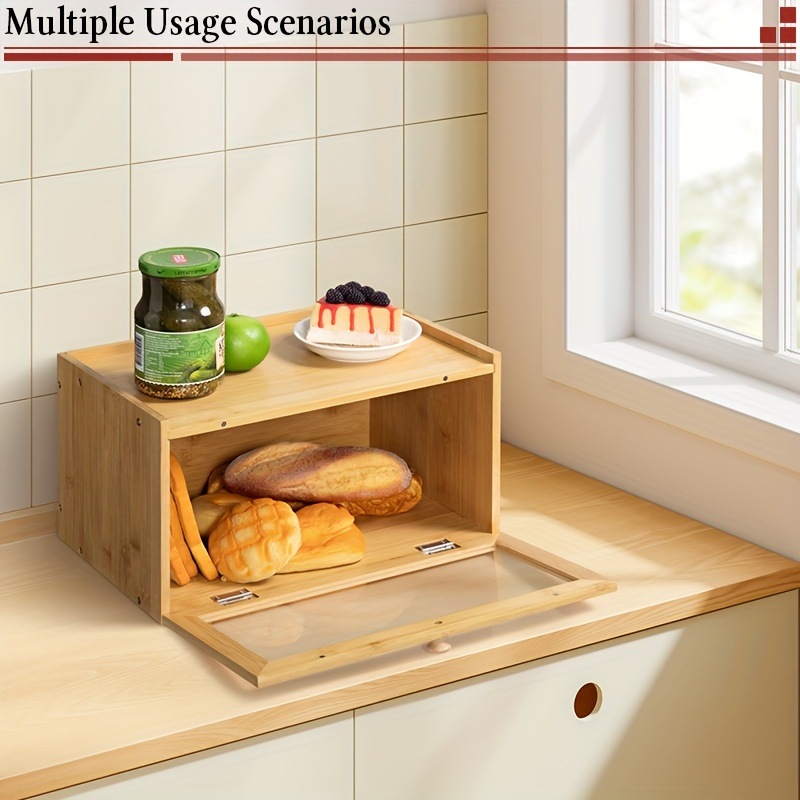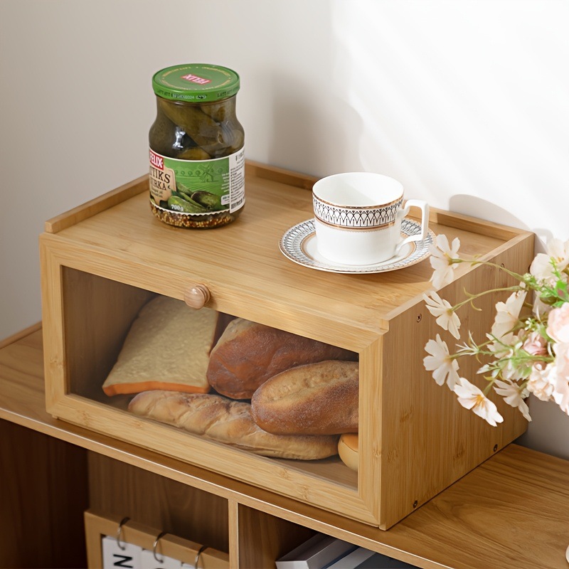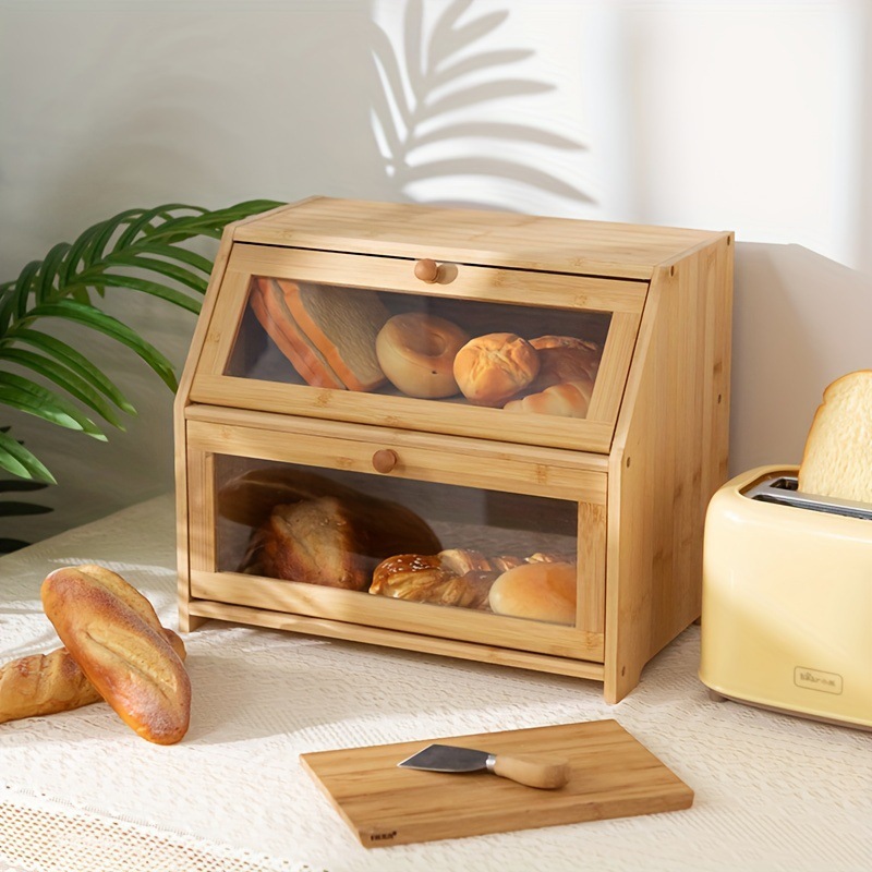 빵 상자 보관 상자 가정용 대나무 구운 토스트 홀더 나무 케이크 유리 주방 더블 레이어 잡화 보관 캐비닛
