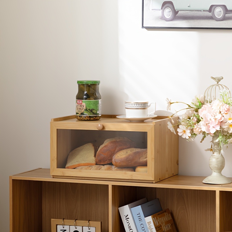 빵 상자 보관 상자 가정용 대나무 구운 토스트 홀더 나무 케이크 유리 주방 더블 레이어 잡화 보관 캐비닛스토어 가기