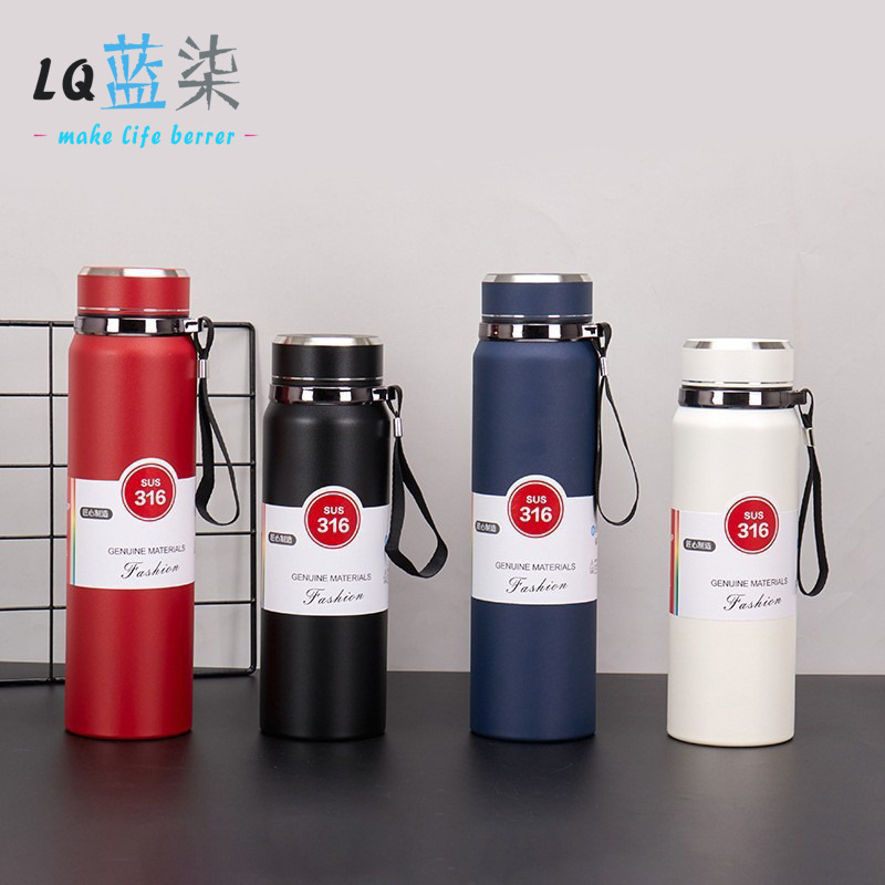316 스테인레스 스틸 스포츠 물병, 끈이 달린 대용량 야외 등산 여행용 물병, 차와 물 분리 보온병 컵