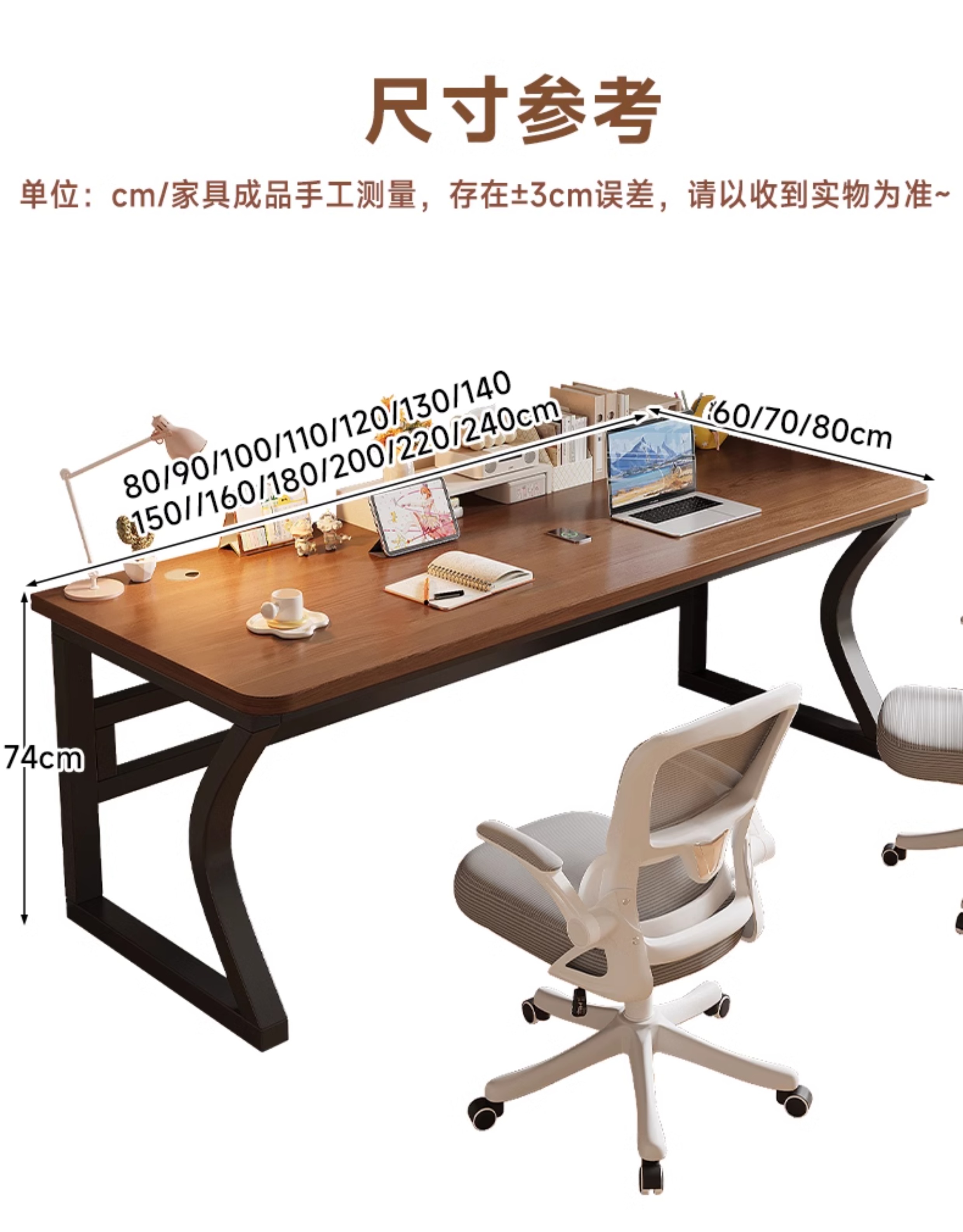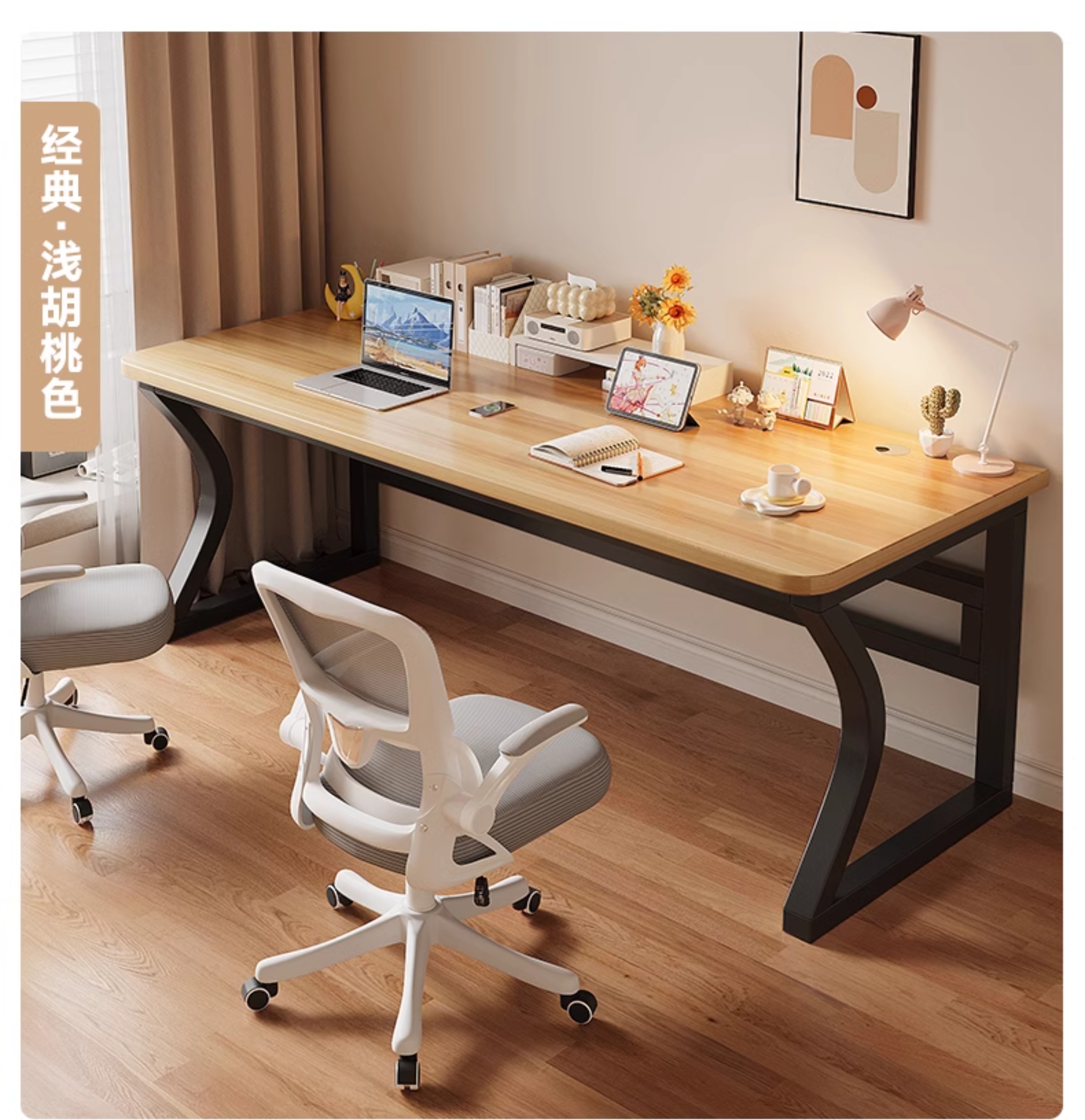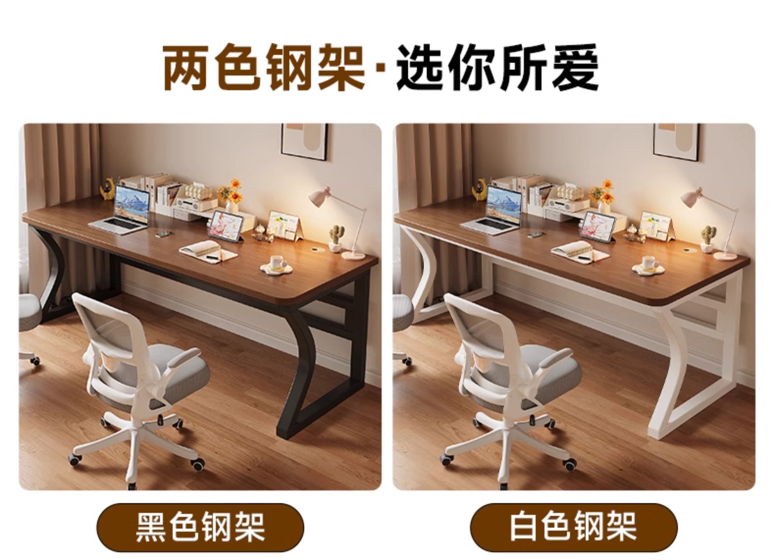 • 라이트 월넛 컬러 데스크탑 + 블랙 선반 [3CM 두꺼운 데스크탑]