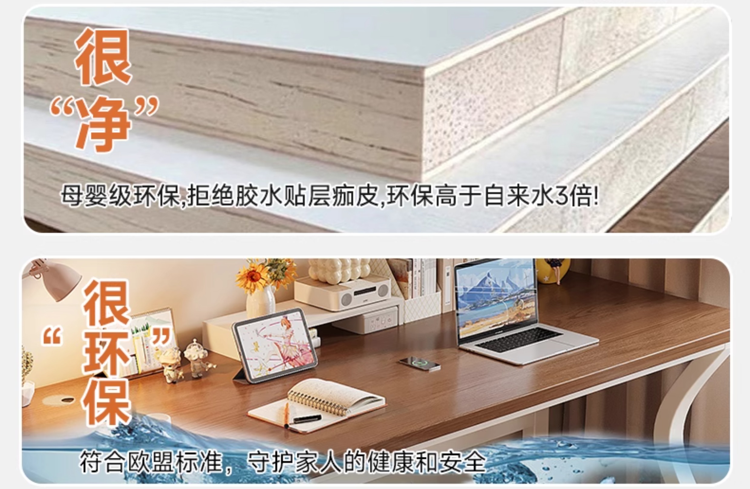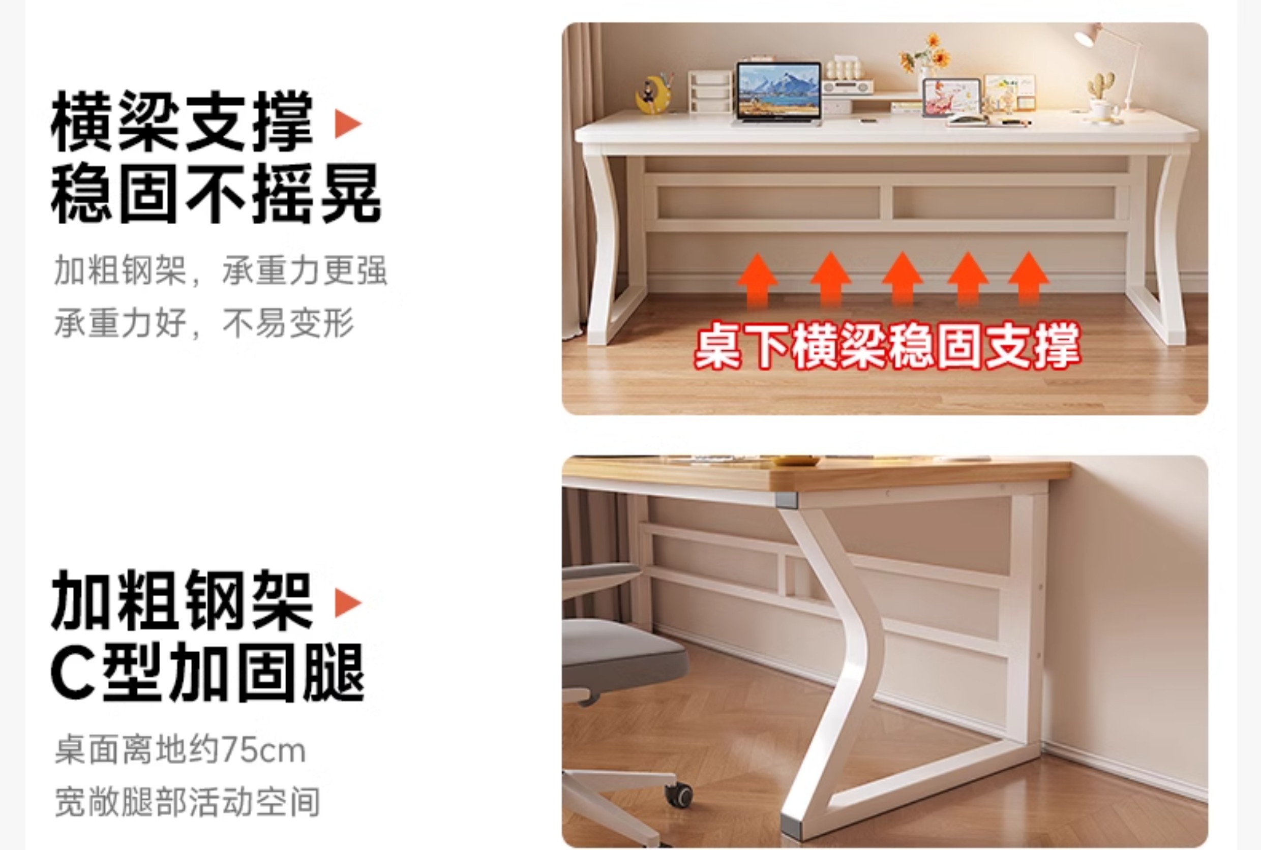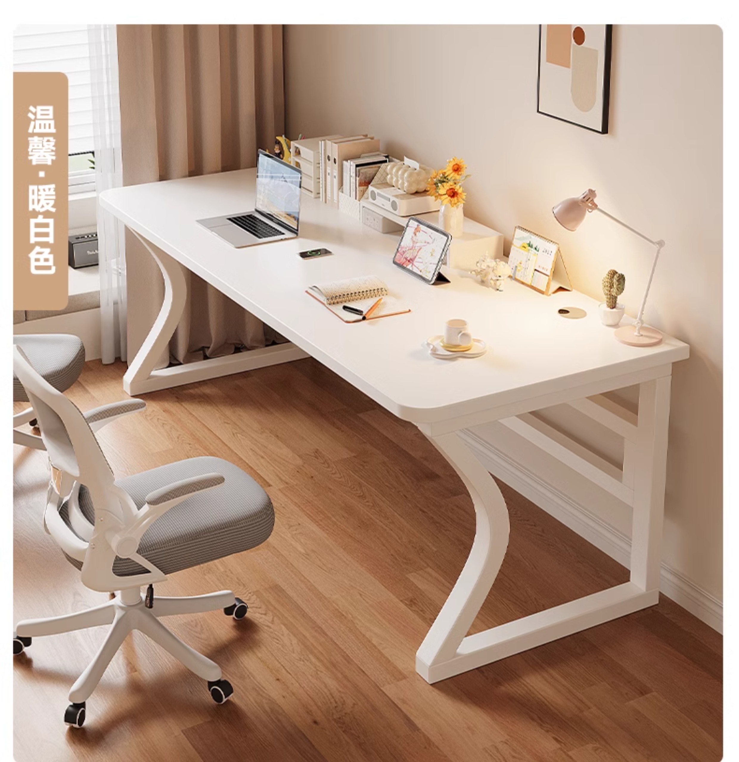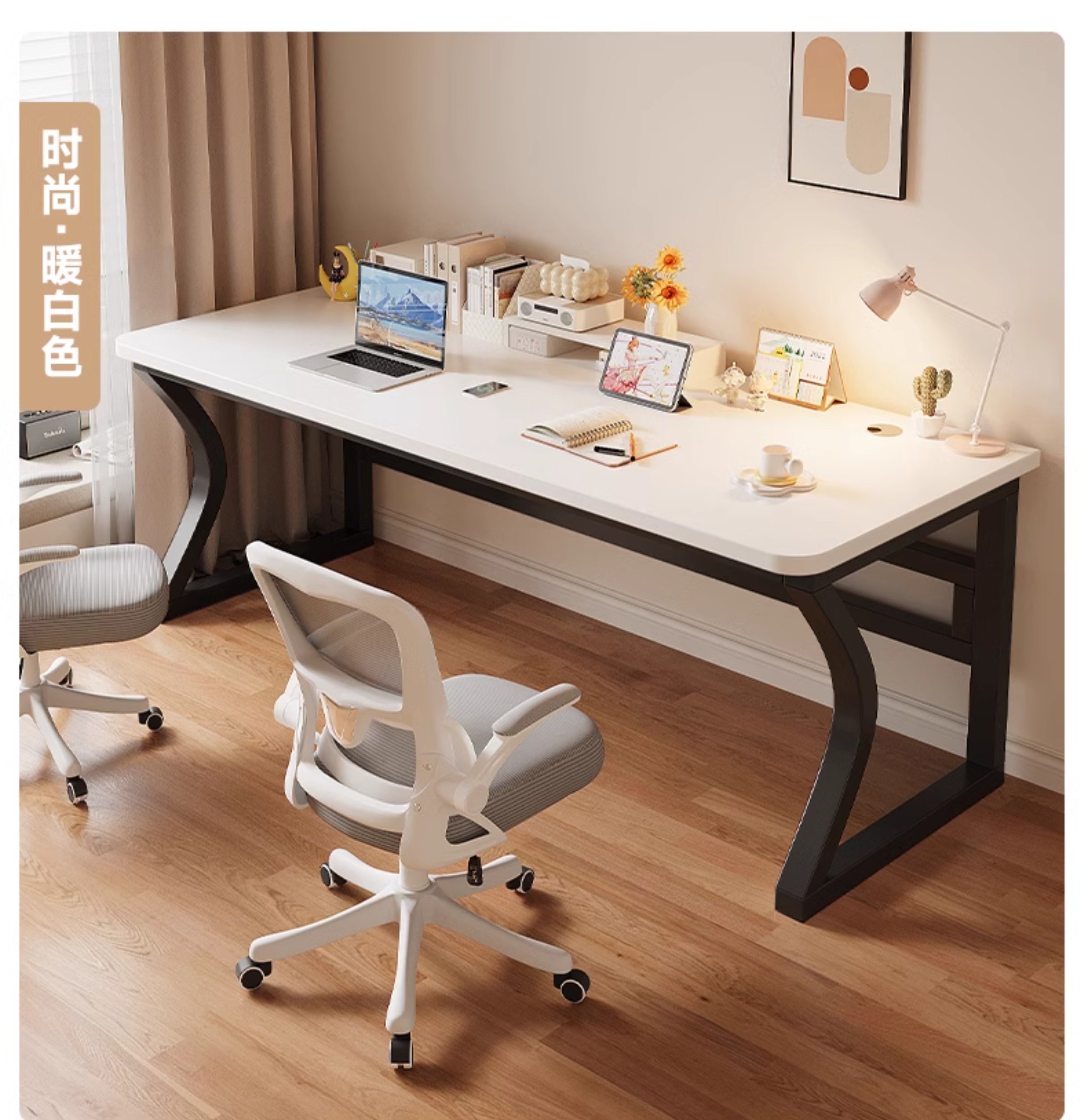 • 흰색 데스크탑 + 흰색 선반 [3CM 두꺼운 데스크탑]