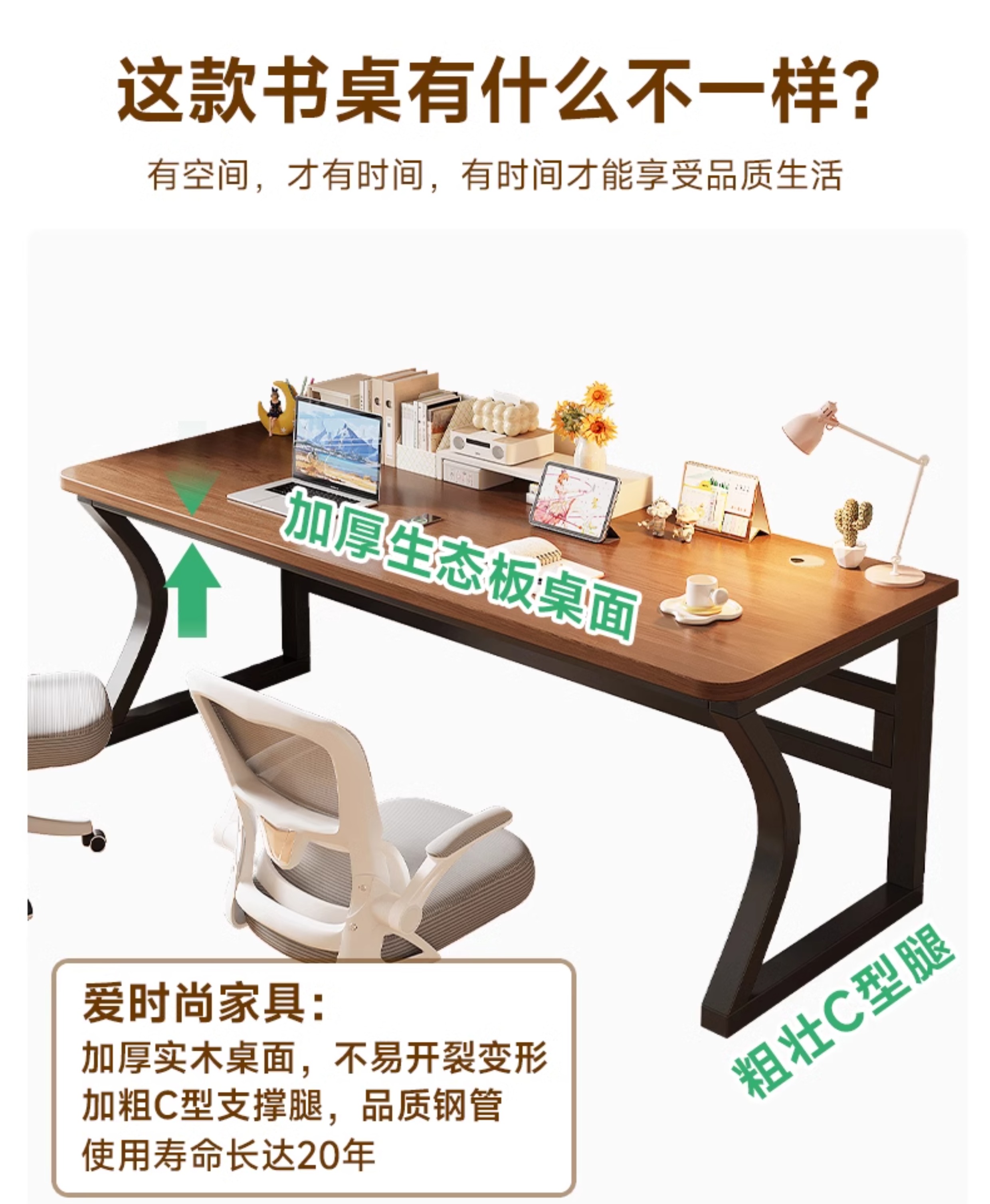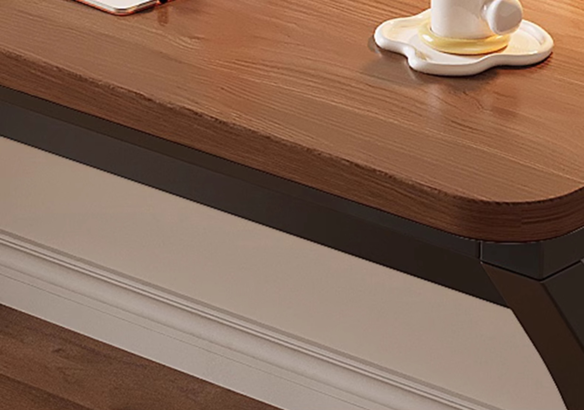 • 라이트 월넛 컬러 데스크탑 + 화이트 선반 [3CM 두꺼운 데스크탑]