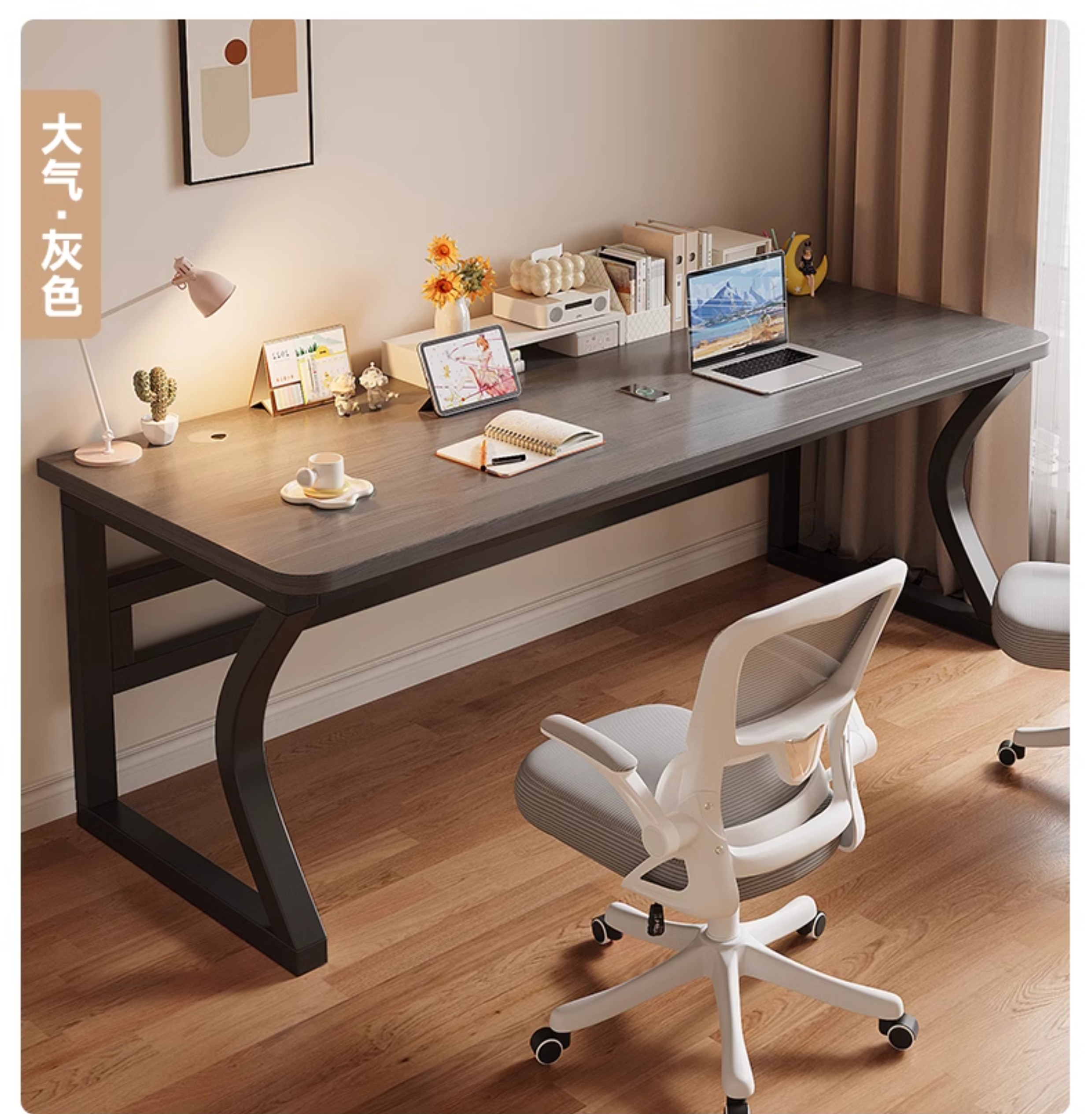 • 그레이 데스크탑 + 블랙 선반 [3CM 두꺼운 데스크탑]