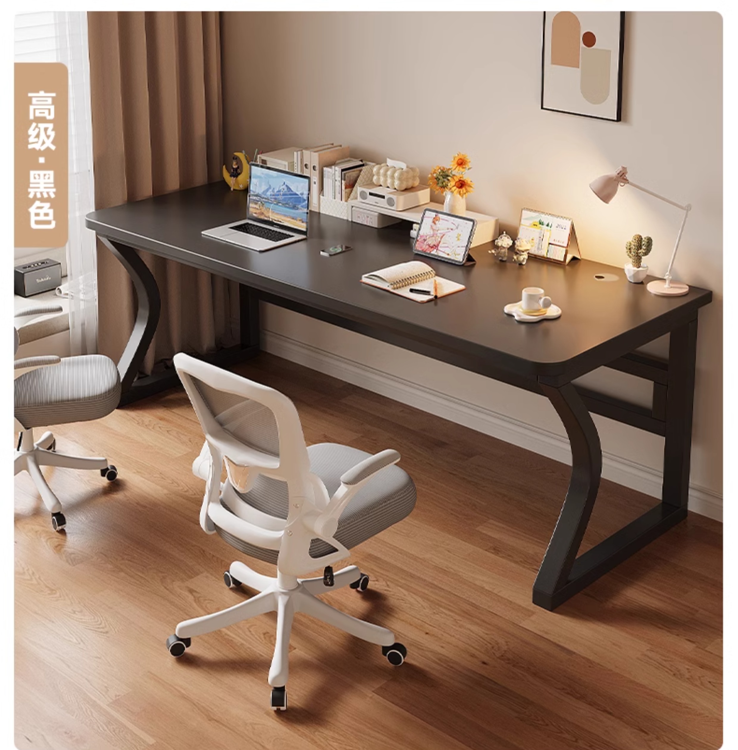 • 블랙 데스크탑 + 블랙 선반 [3CM 두꺼운 데스크탑]