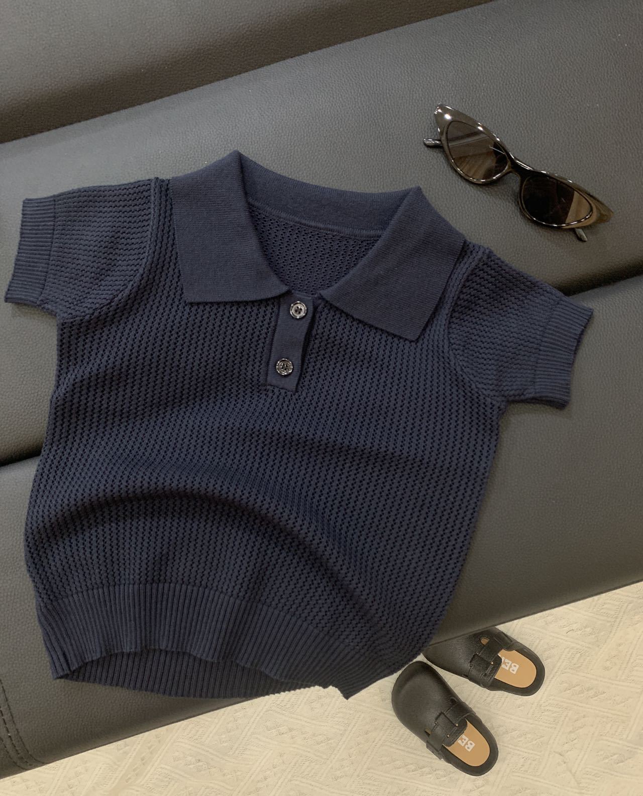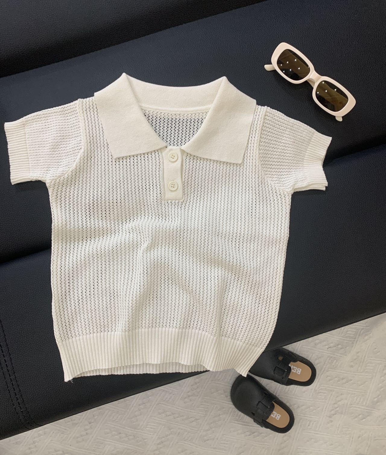 여름 어린이 폴로 칼라 아이스 실크 반팔 중공 리오셀 스웨터 아동복 다목적 새 짧은 티셔츠 배치