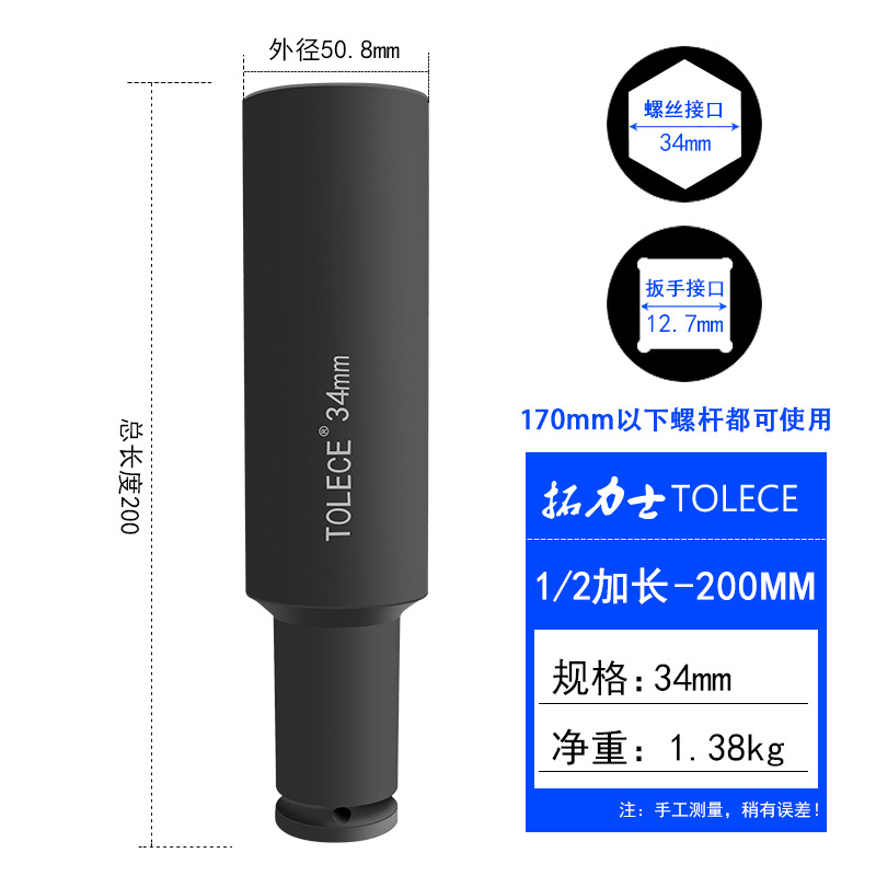 1/2 확장 육각 소켓 150mm 20cm 소형 바람 총 대형 비행 헤비 듀티 두꺼운 가스 전기 렌치스토어 가기