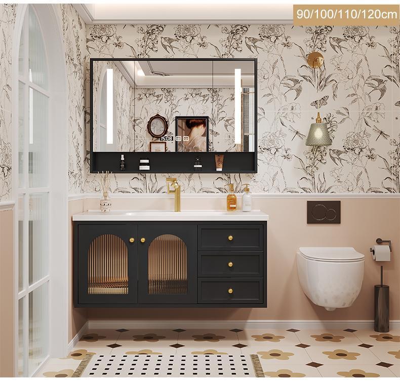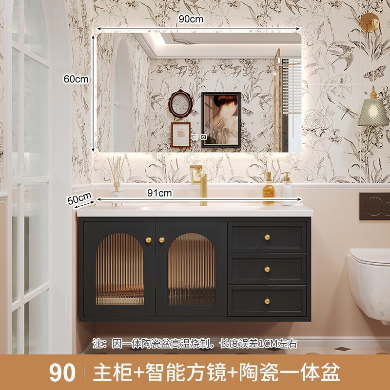• 액세서리 + 세라믹 세면대를 포함한 90 검정색 일반 거울 캐비닛