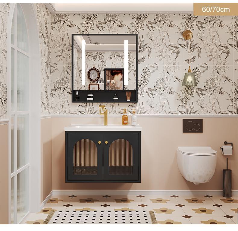 • 액세서리 + 세라믹 세면대가 포함된 70 블랙 스마트 거울 캐비닛