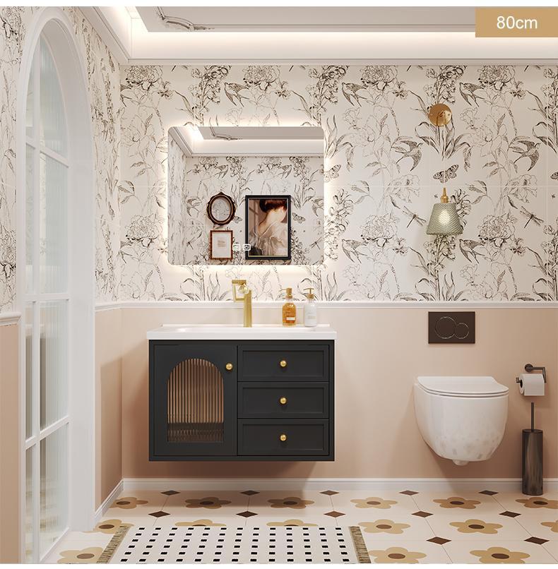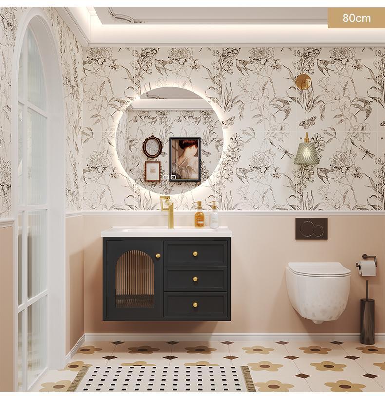 • 액세서리 + 세라믹 세면대를 포함한 80 검정색 일반 거울 캐비닛