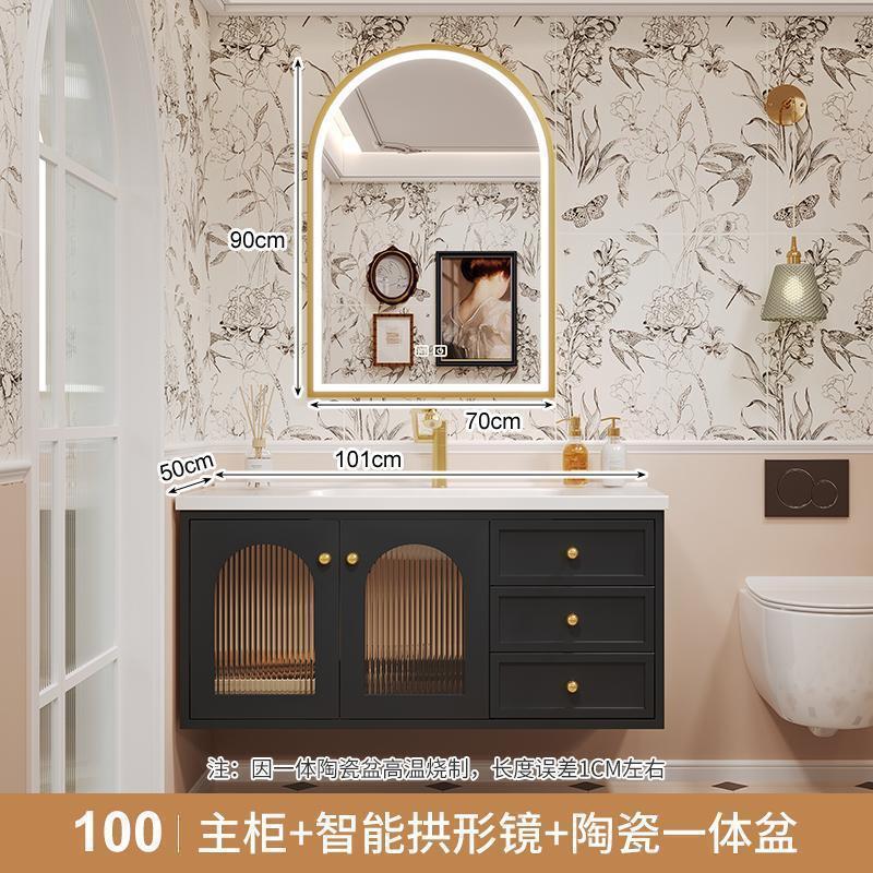 • 액세서리 + 세라믹 세면대를 포함한 100개의 검정색 일반 거울 캐비닛