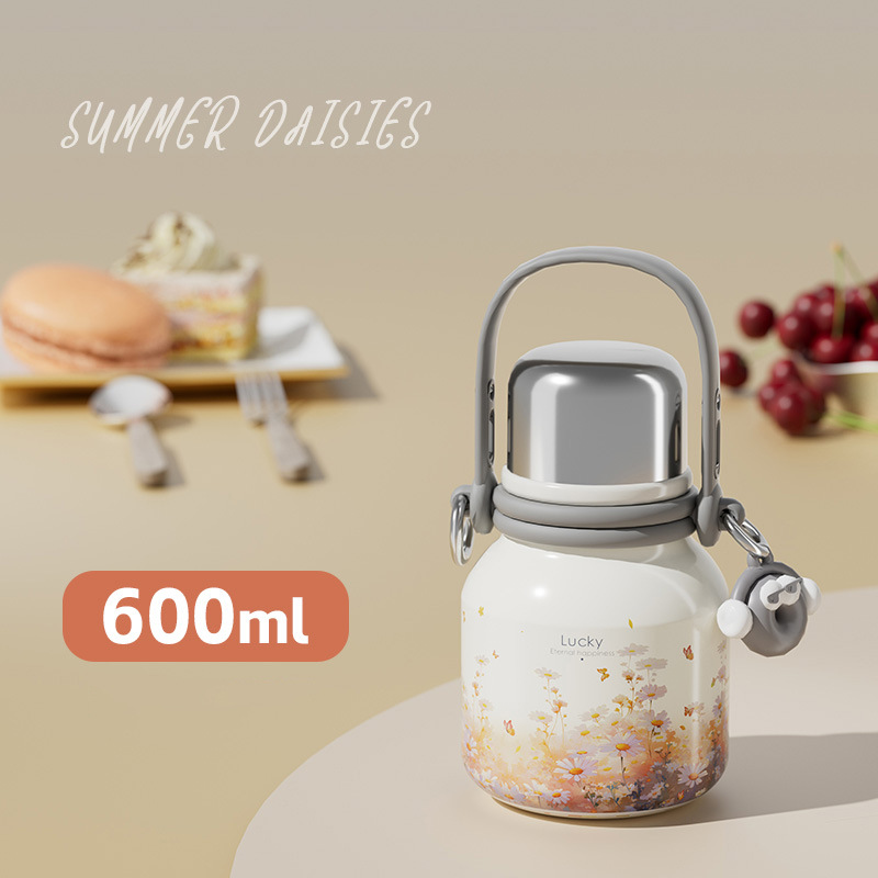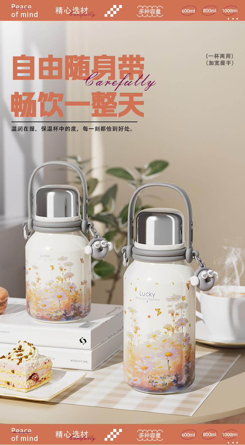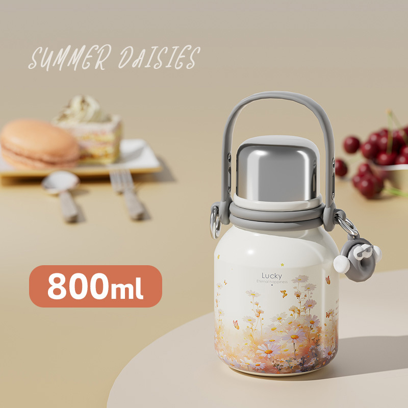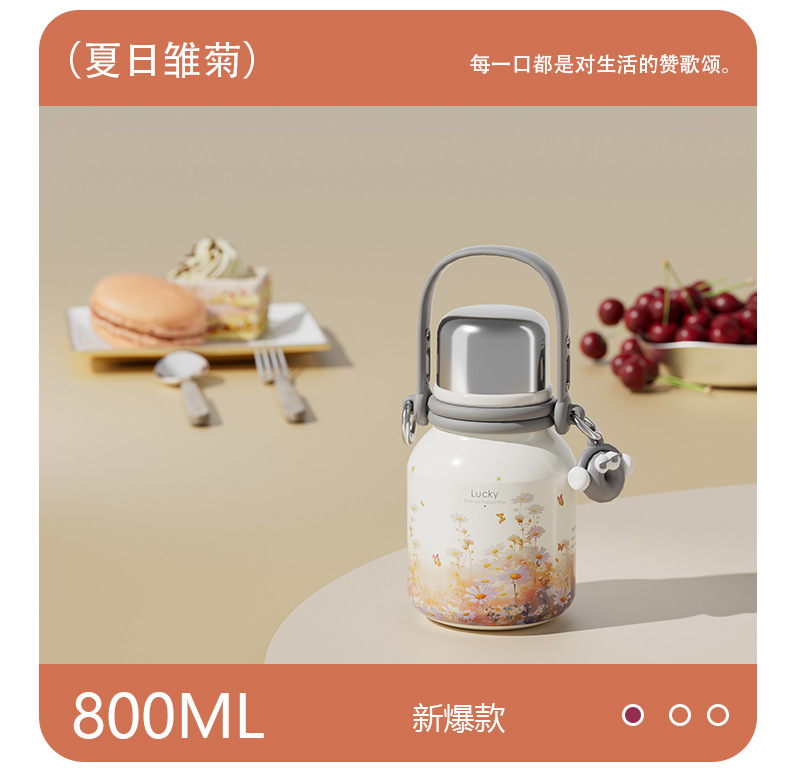 보온병 주전자 대용량 여름 야외 캠핑 냉수 컵 소녀의 고급 스테인레스 스틸 학생 보온병 컵스토어 가기