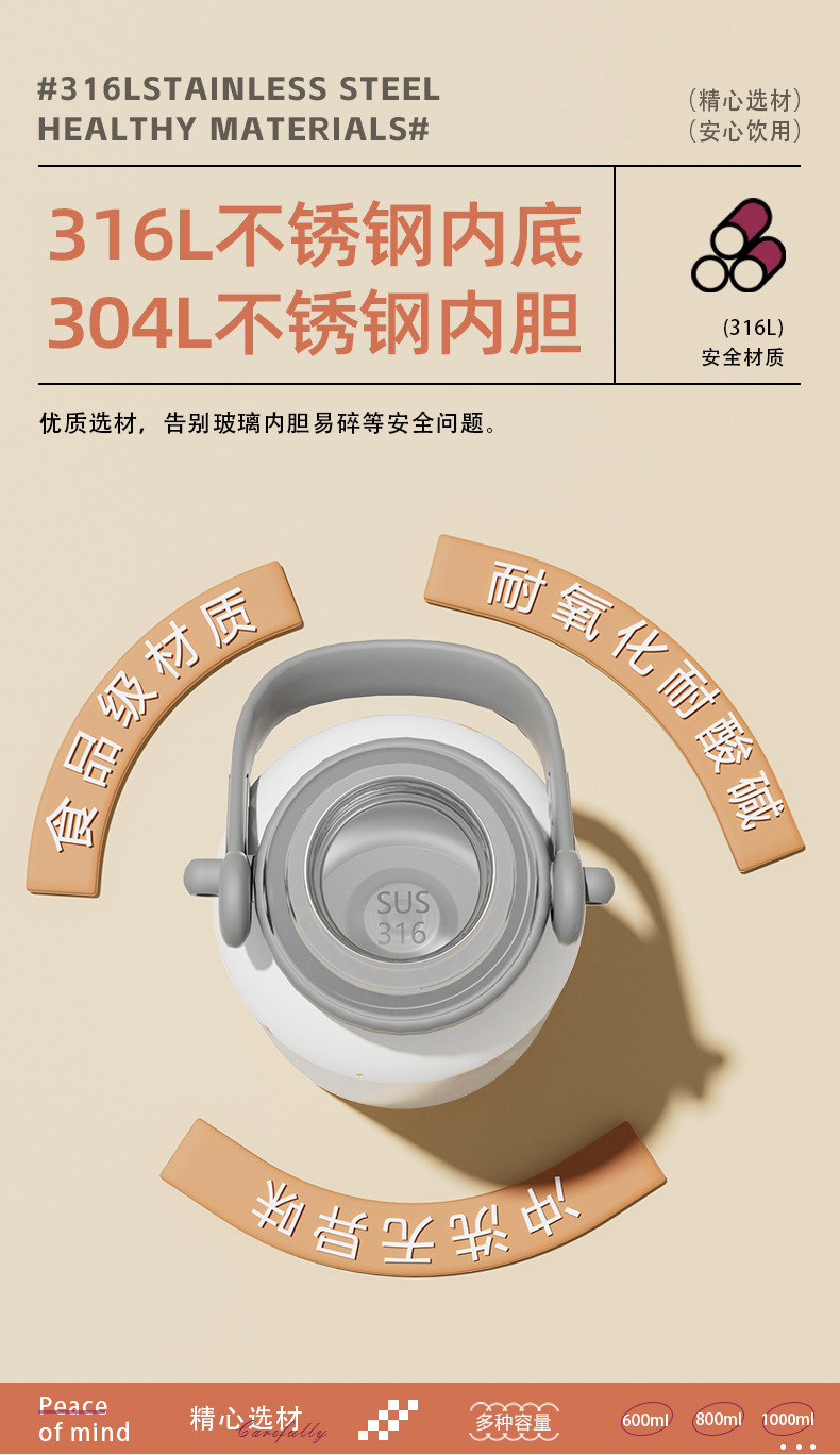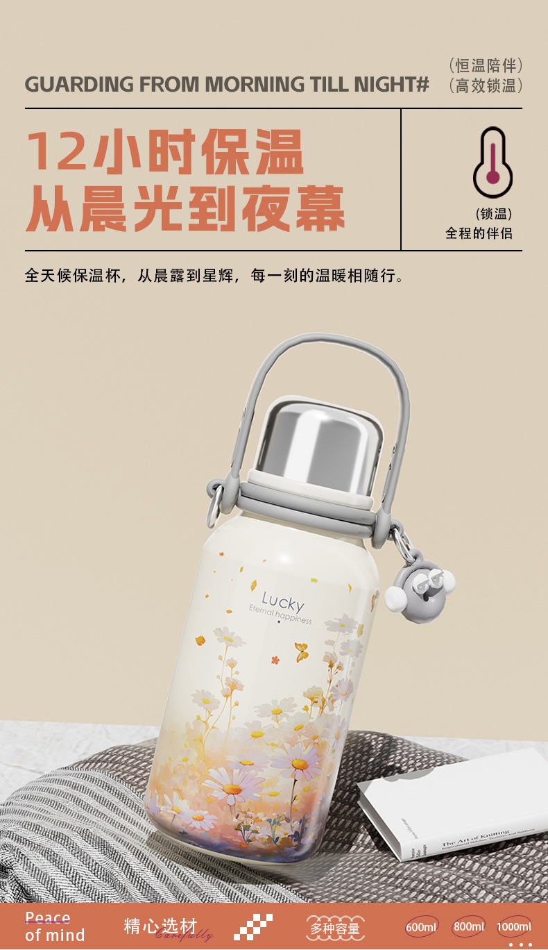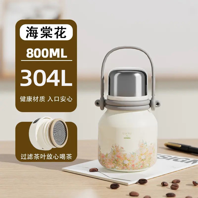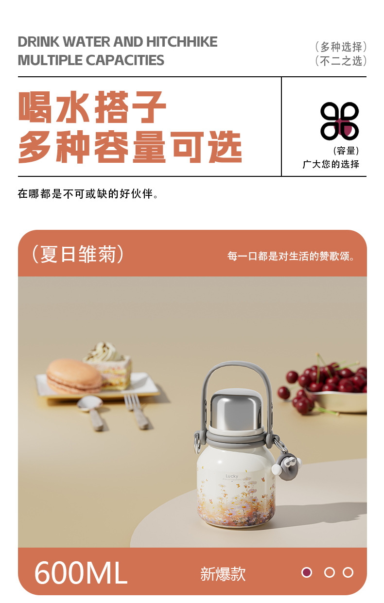보온병 주전자 대용량 여름 야외 캠핑 냉수 컵 소녀의 고급 스테인레스 스틸 학생 보온병 컵스토어 가기