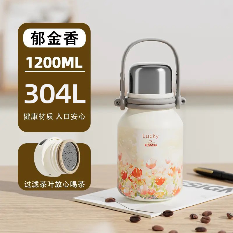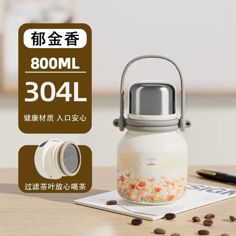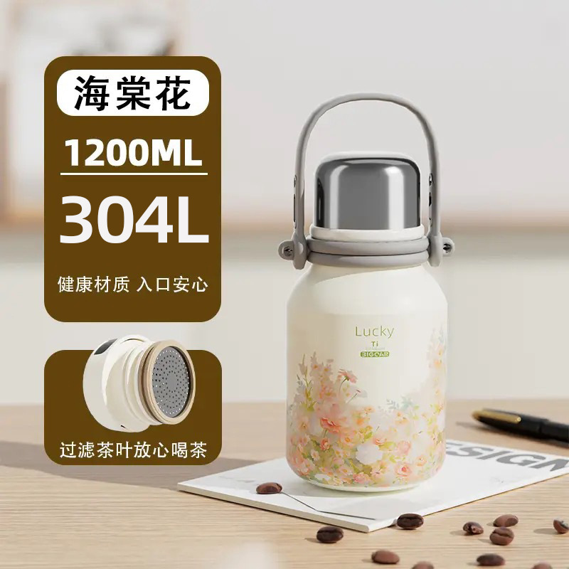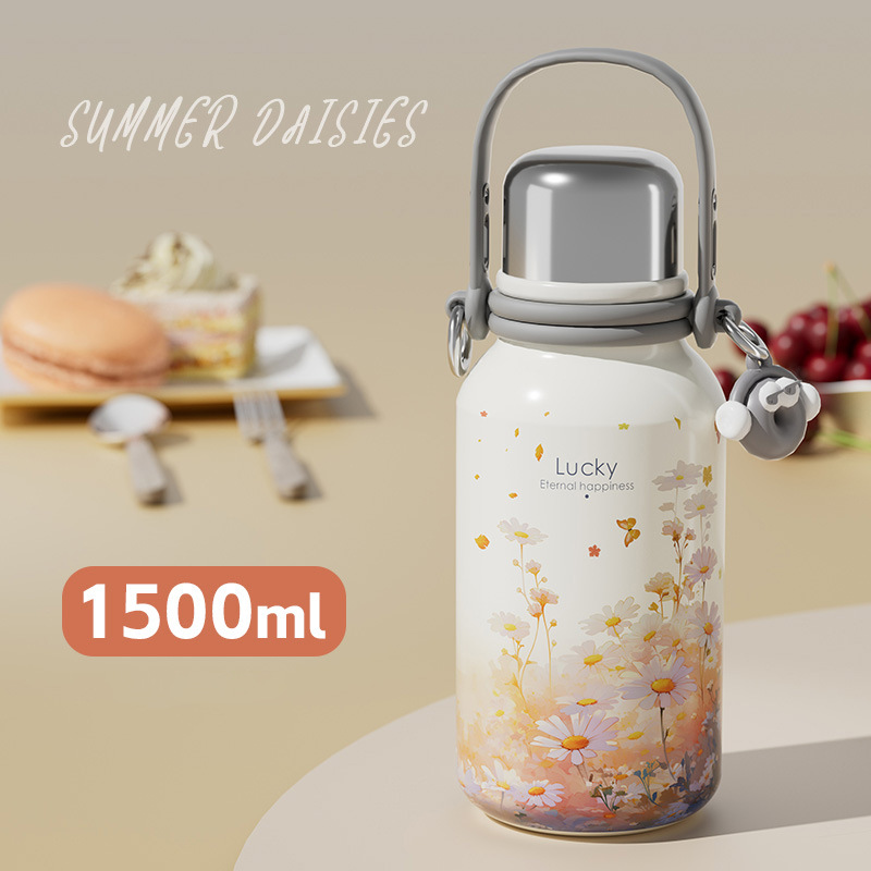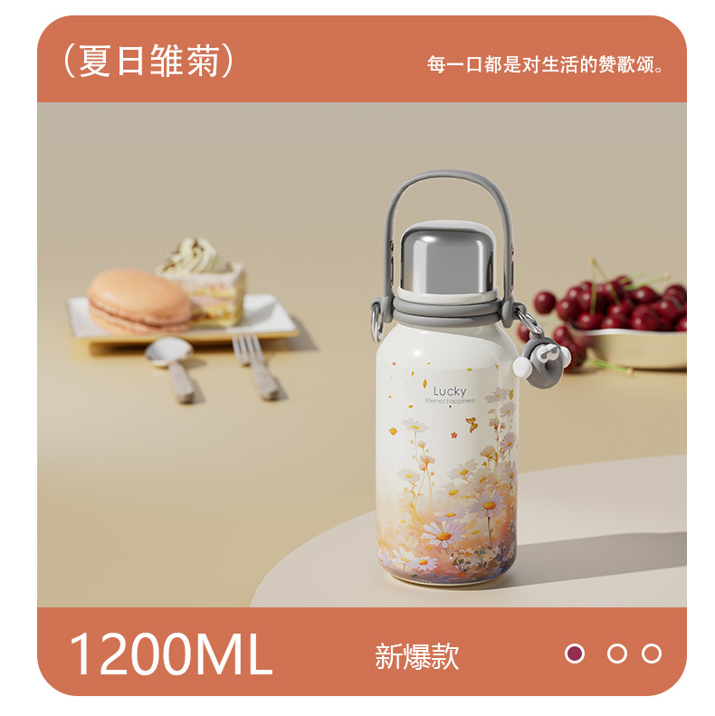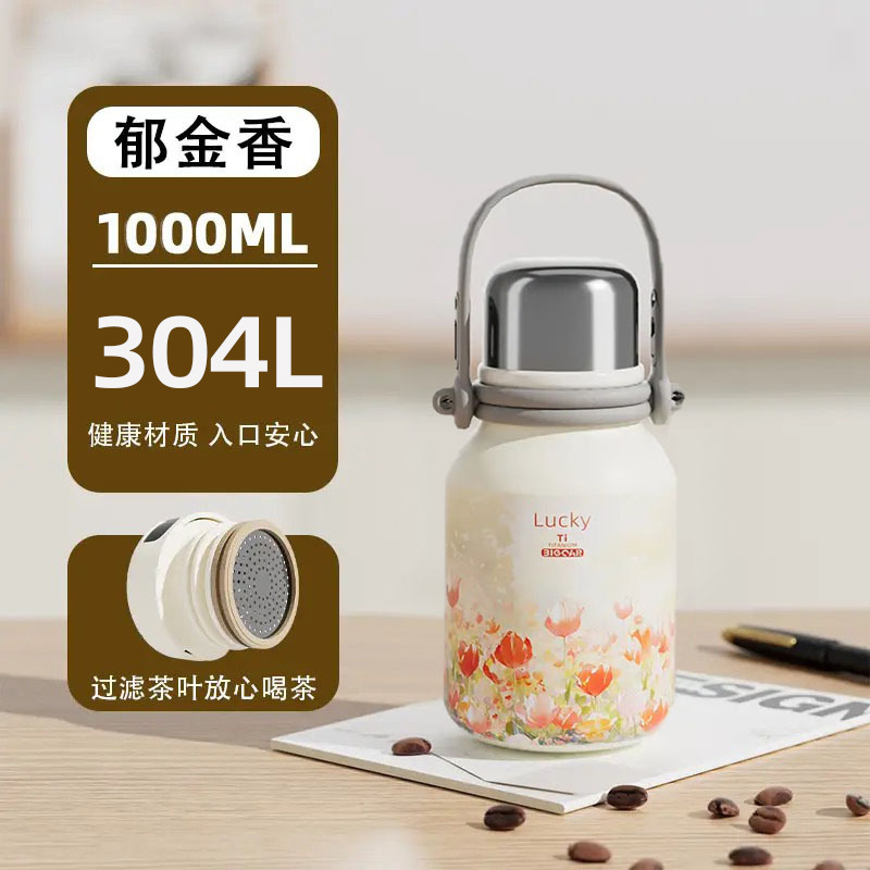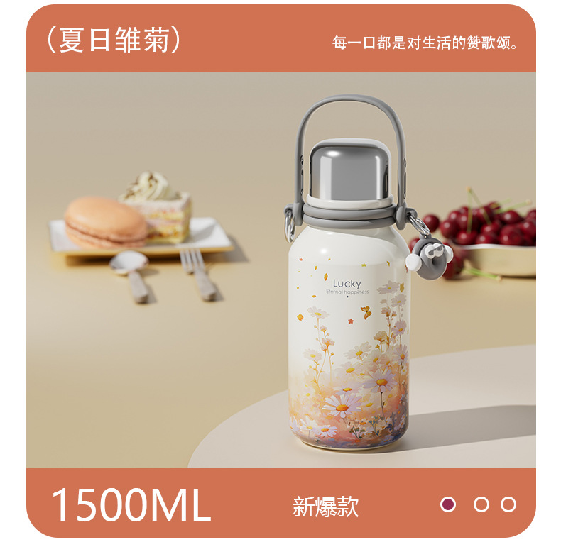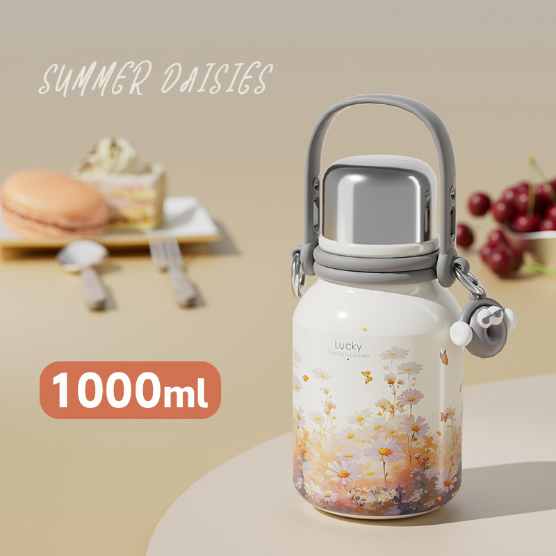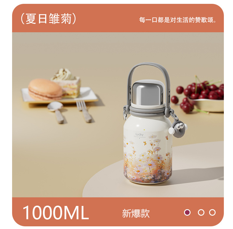 보온병 주전자 대용량 여름 야외 캠핑 냉수 컵 소녀의 고급 스테인레스 스틸 학생 보온병 컵